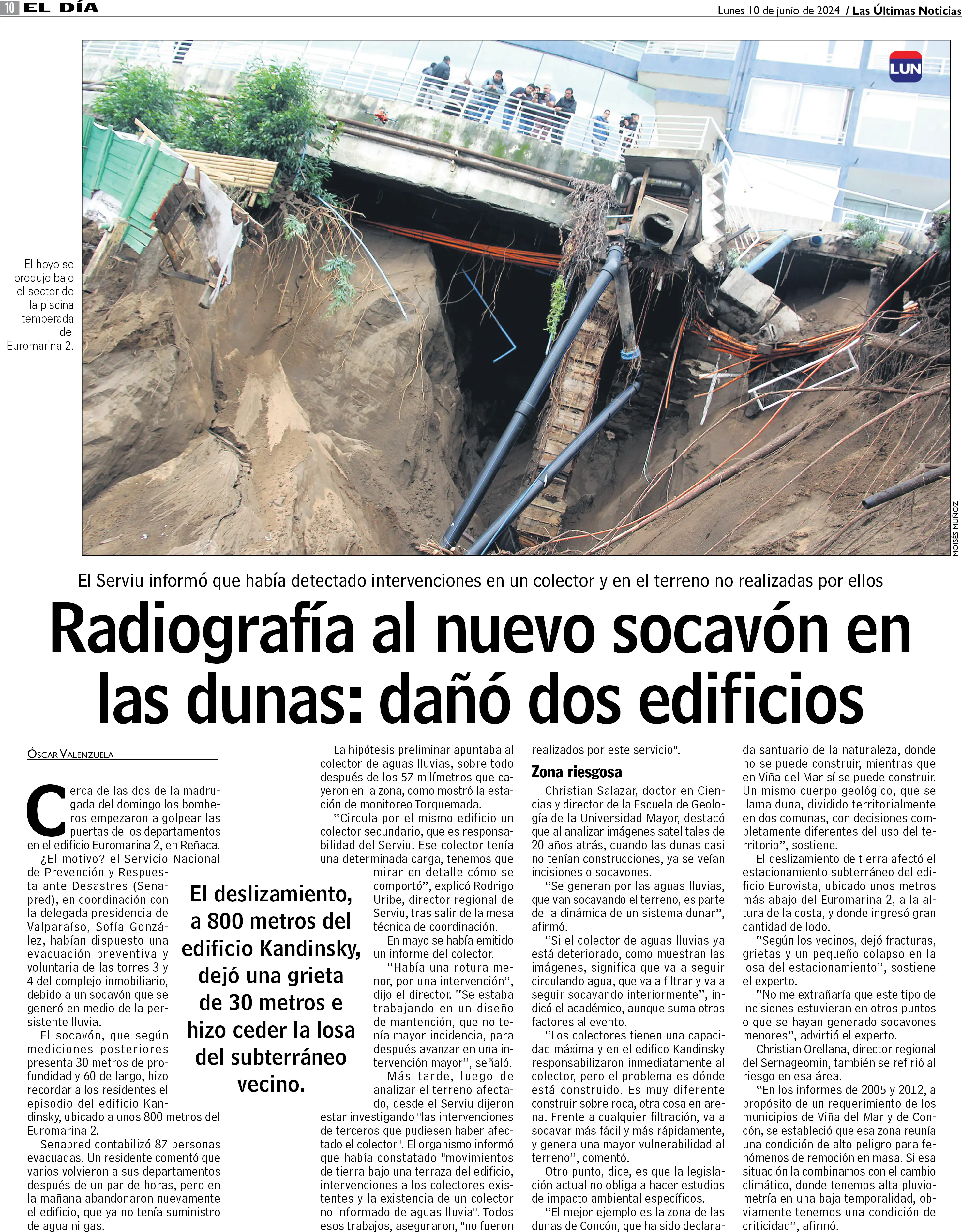 Radiografía al nuevo socavón en las dunas: dañó dos edificios