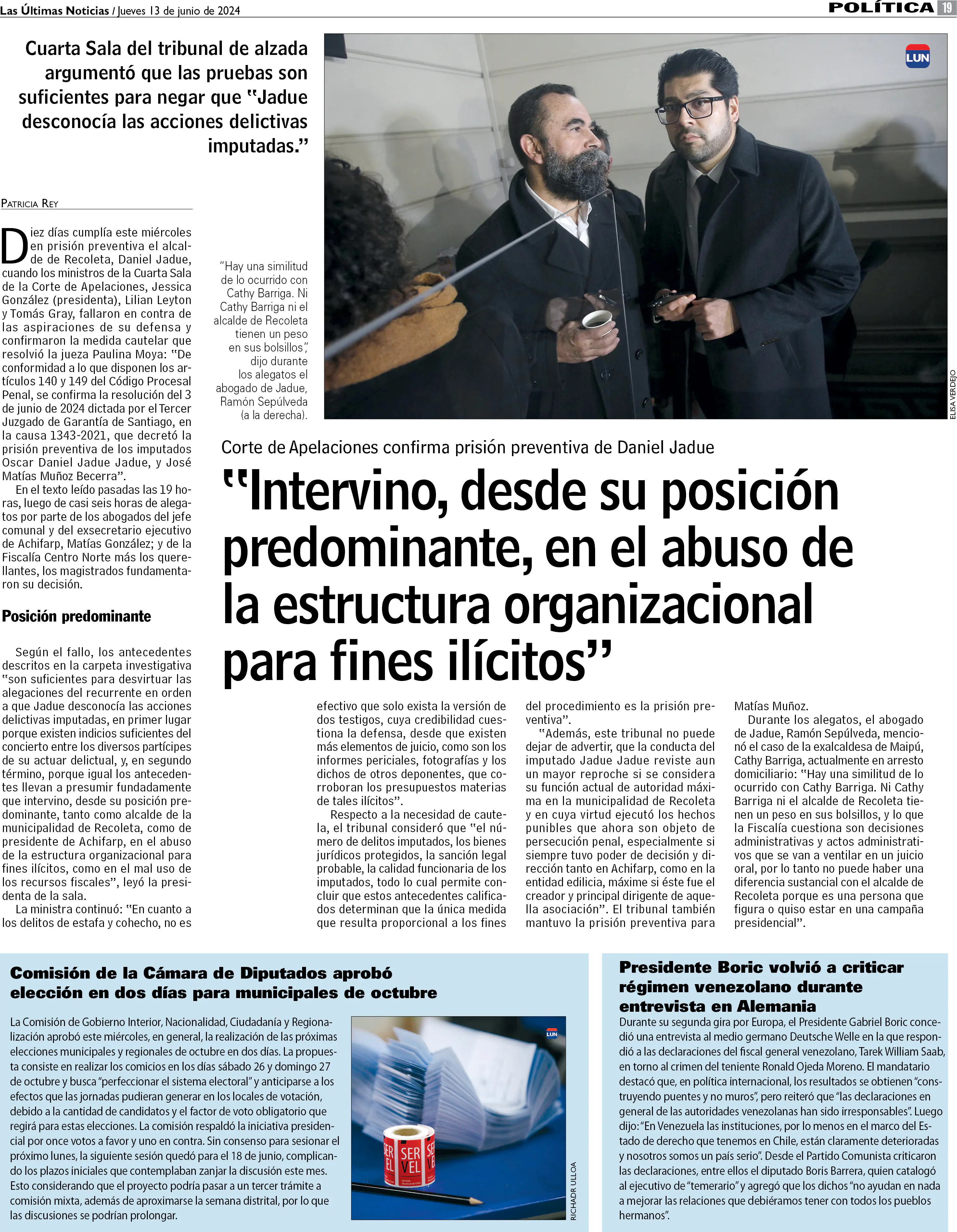 Corte de Apelaciones confirmó prisión preventiva de Daniel Jadue