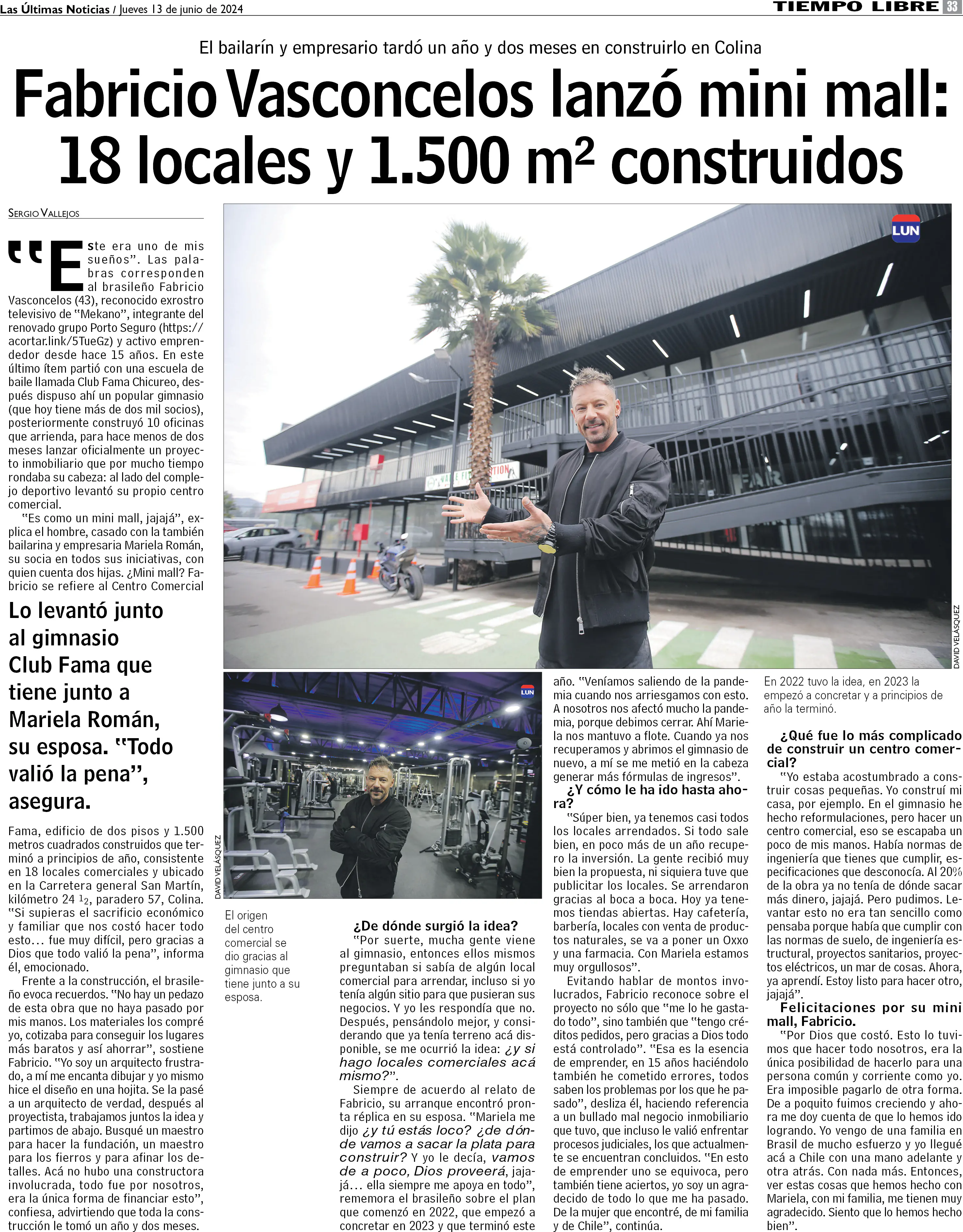 Fabricio Vasconcelos levantó mini mall en Colina: "Todo valió la pena"
