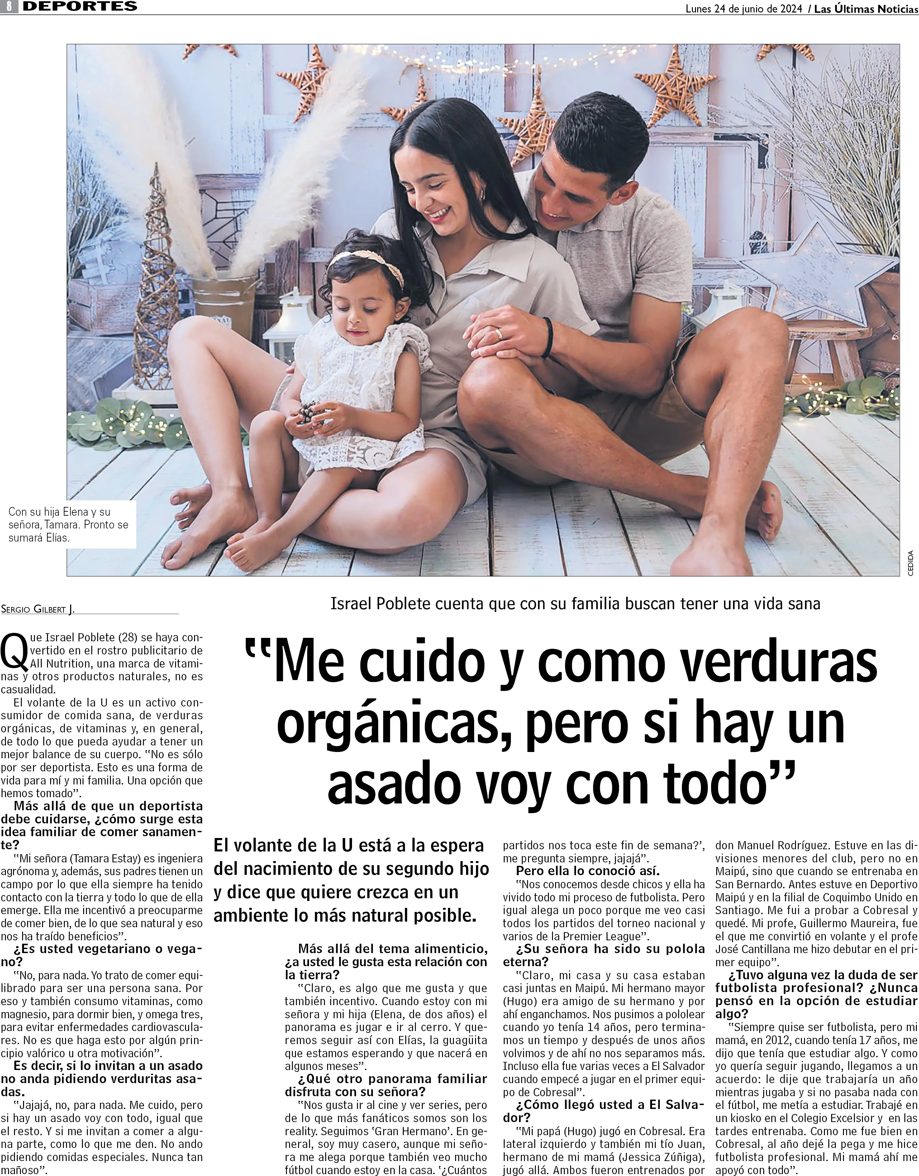 Israel Poblete: "Como verduras orgánicas, pero en un asado voy con todo"