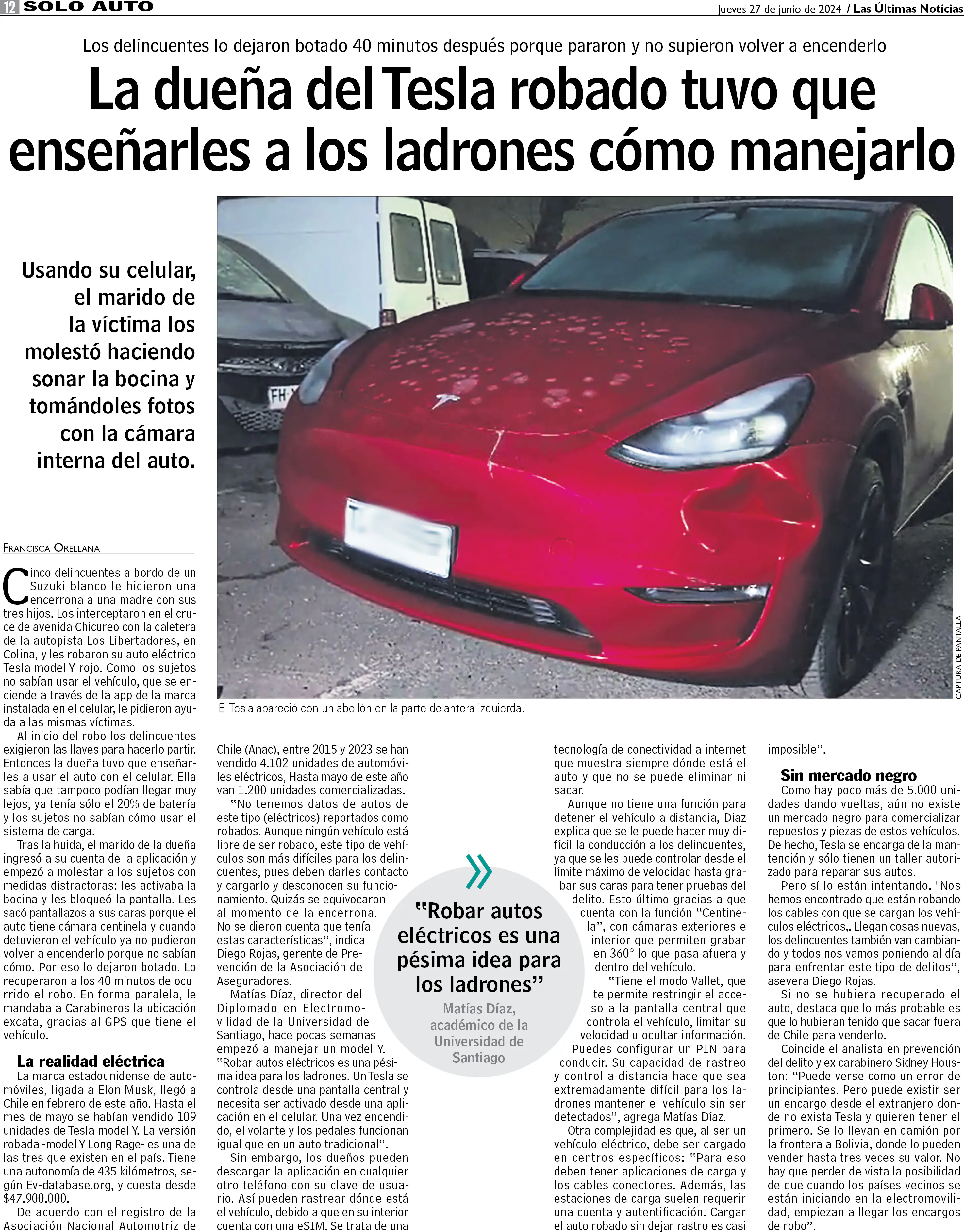 La eléctrica recuperación del auto Tesla que fue robado en Chicureo