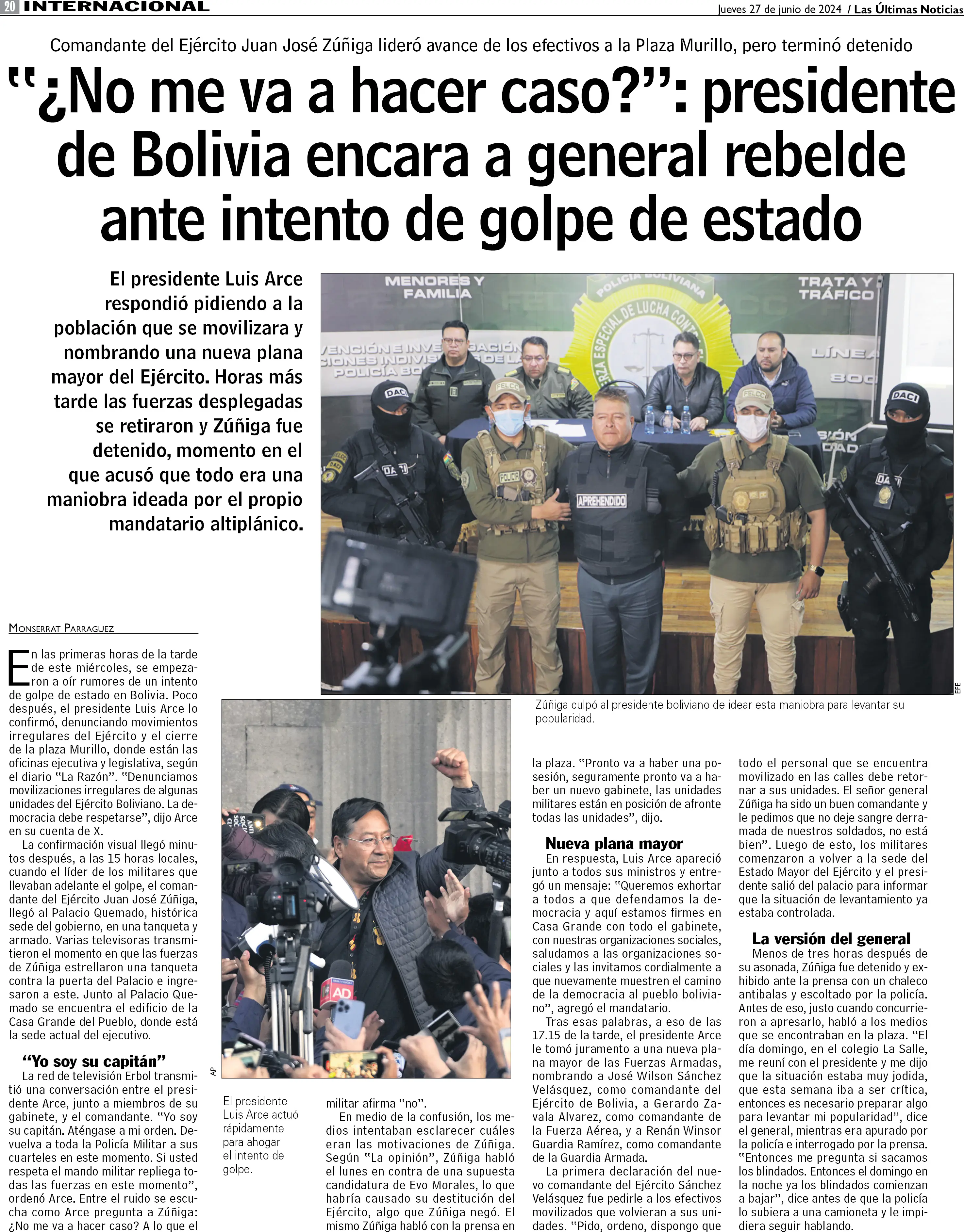 "¿No me va a hacer caso?": presidente de Bolivia encara a general rebelde ante intento de golpe de estado