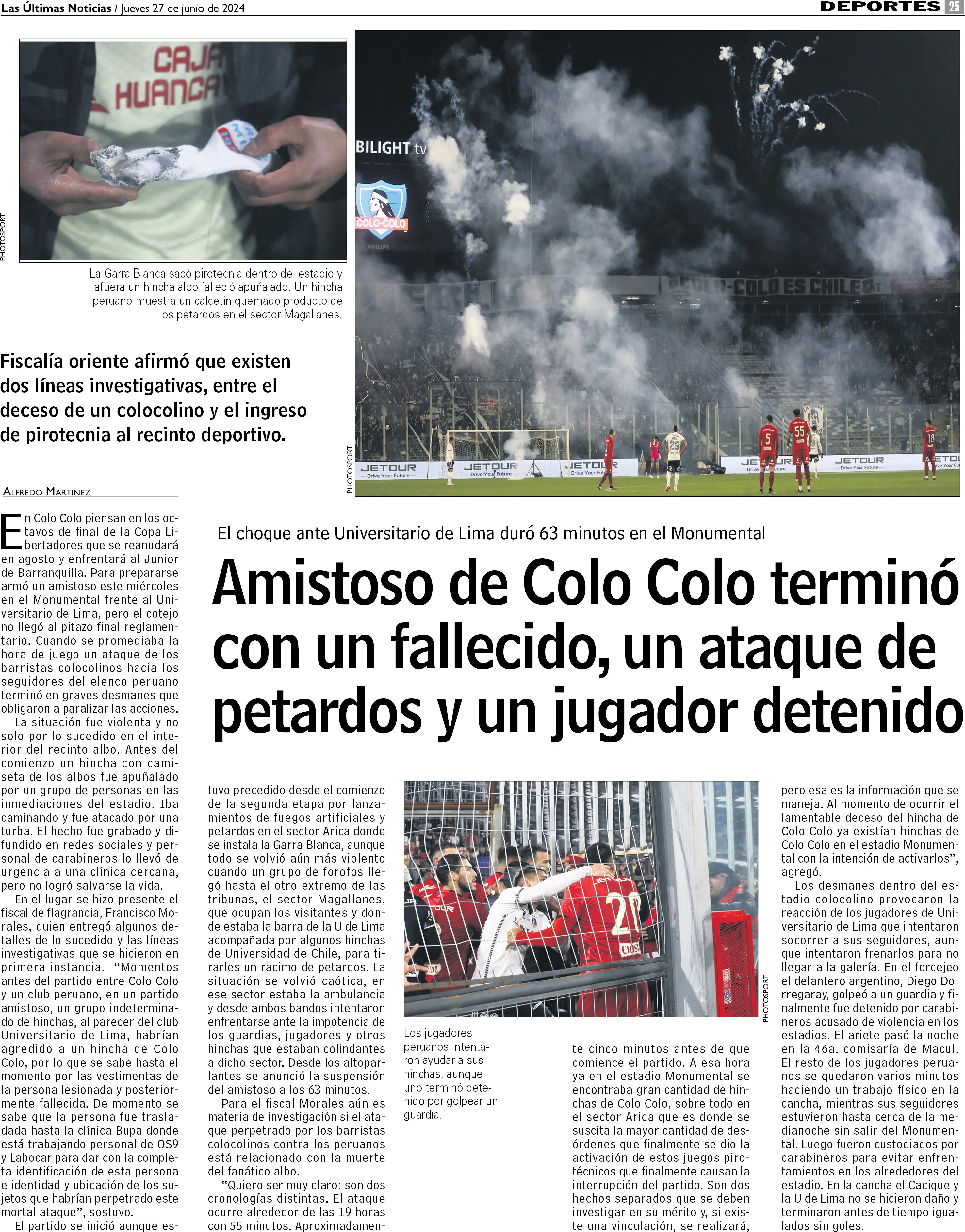 Amistoso de Colo Colo terminó con un fallecido, un ataque de petardos y un jugador detenido