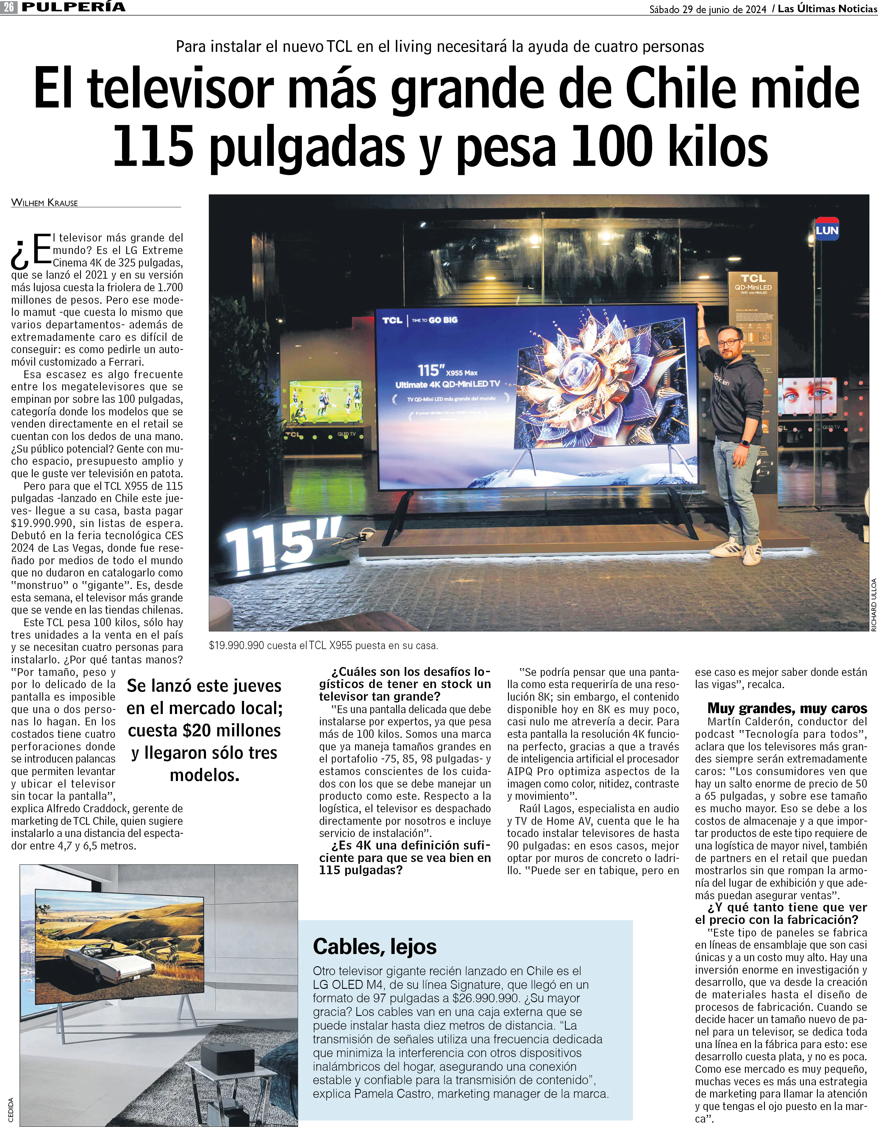 El televisor más grande de Chile mide 115 pulgadas y pesa 100 kilos