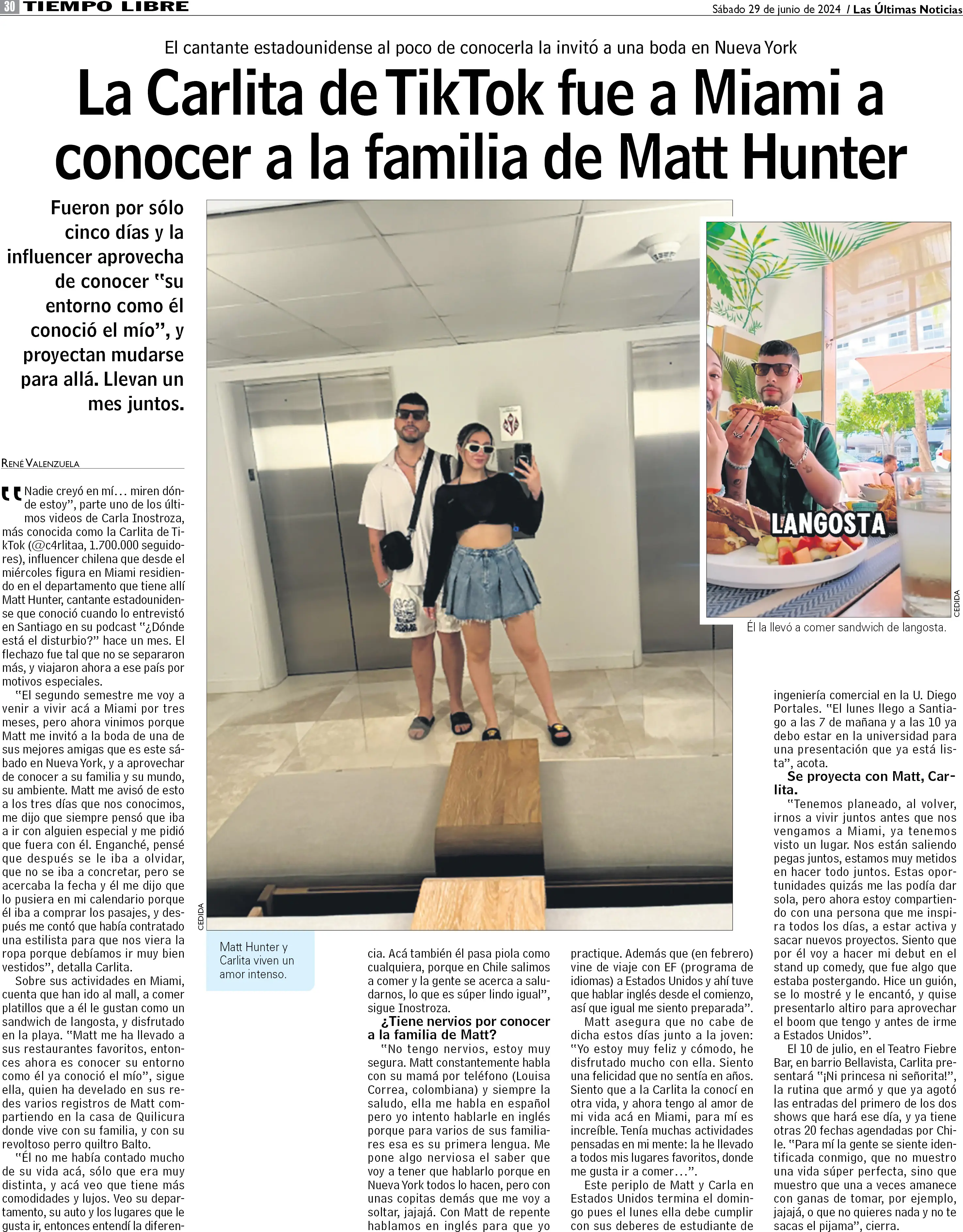La Carlita de TikTok fue a Miami a conocer a la familia de Matt Hunter