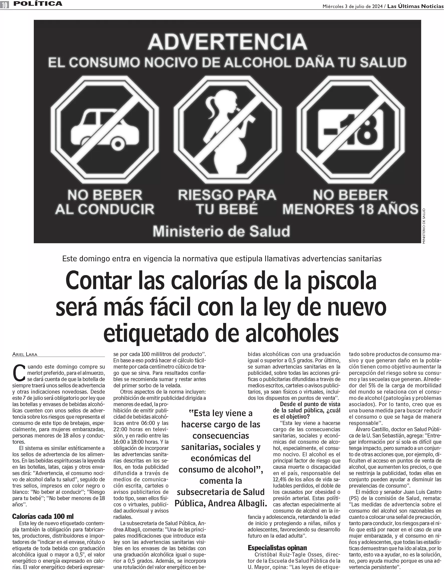 Nueva Ley de Etiquetado de Alcohol lo ayuda a contar calorías de la piscola