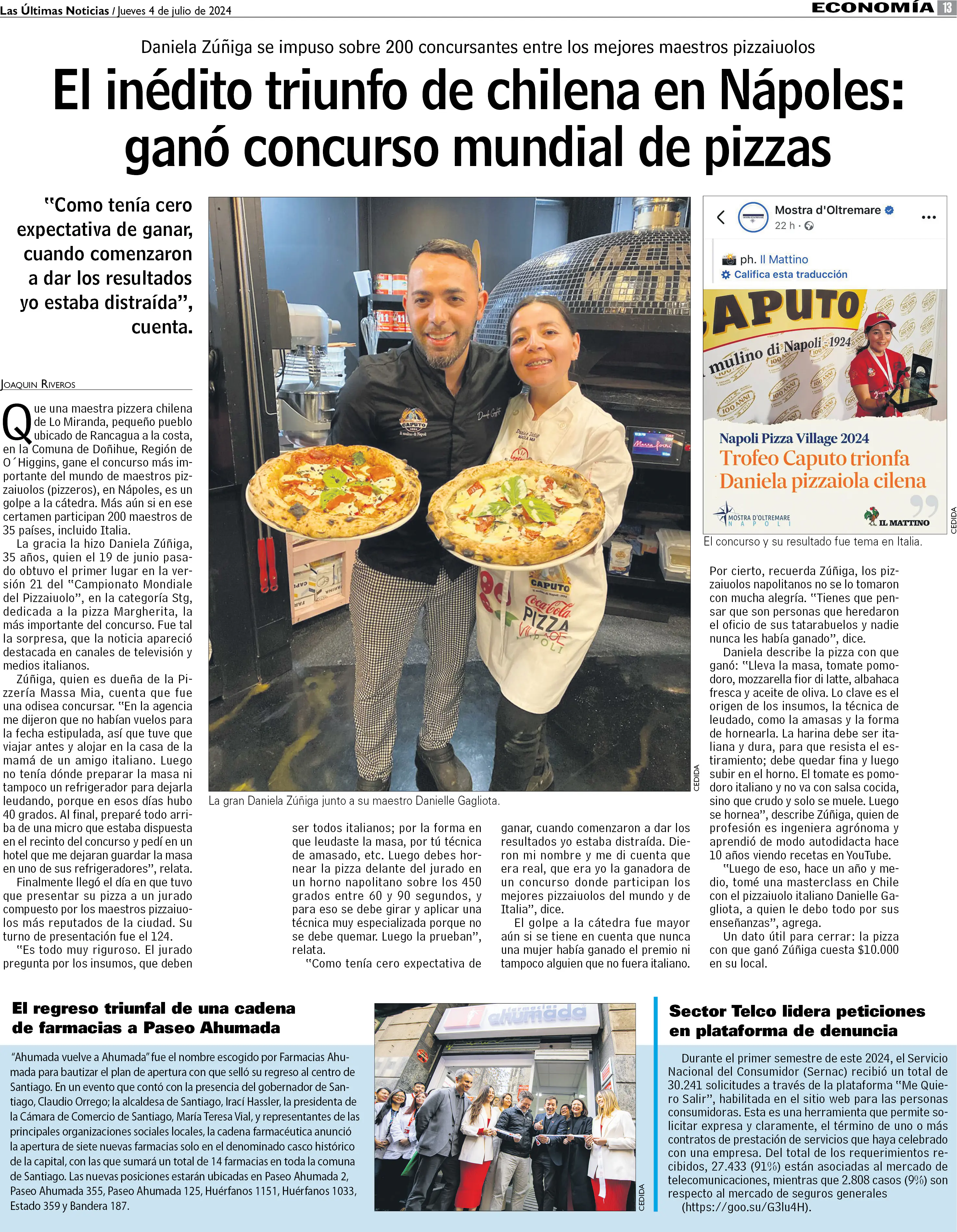 El inédito triunfo de chilena en Nápoles: ganó concurso mundial de pizzas