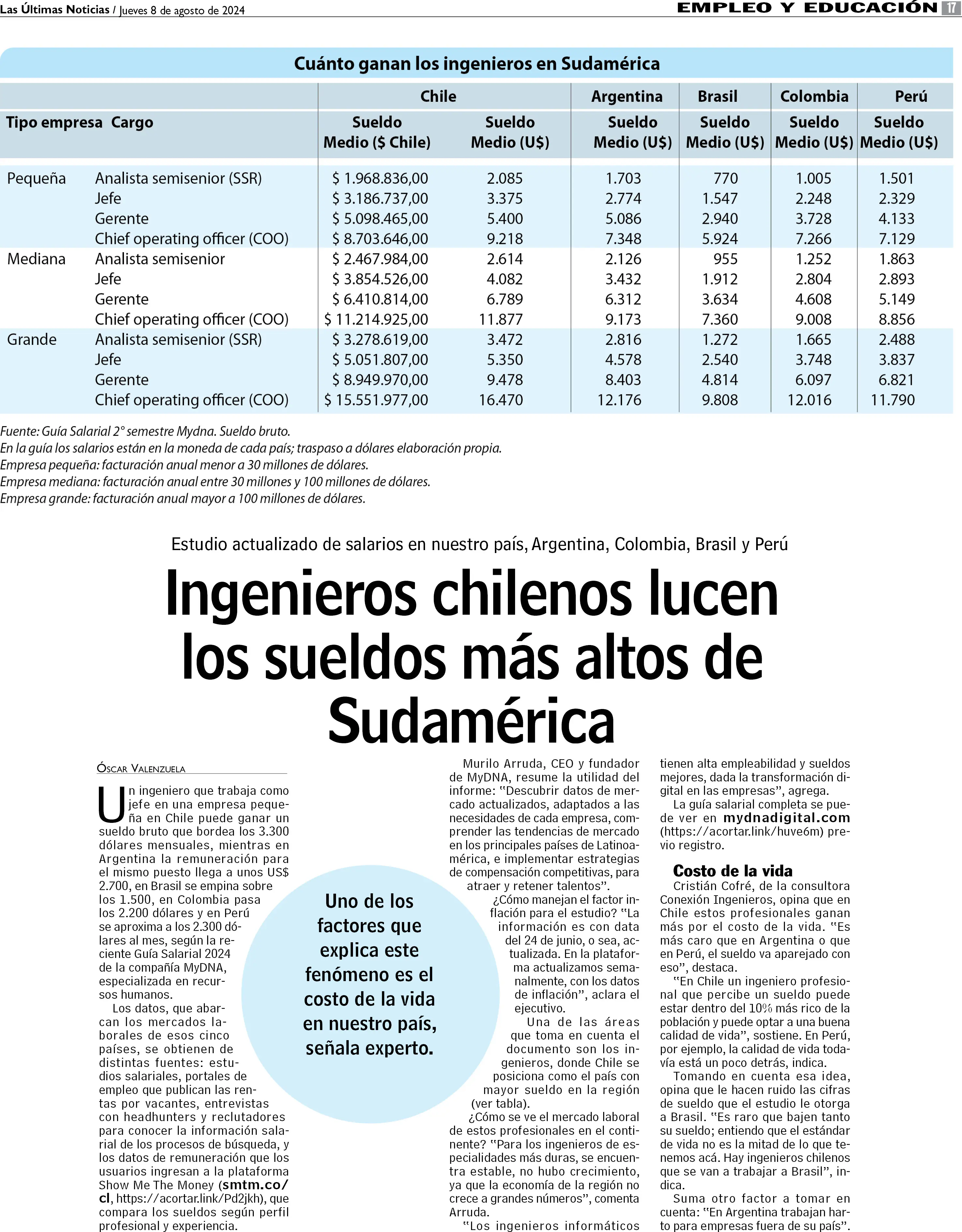 Ingenieros chilenos lucen los sueldos más altos de Sudamérica