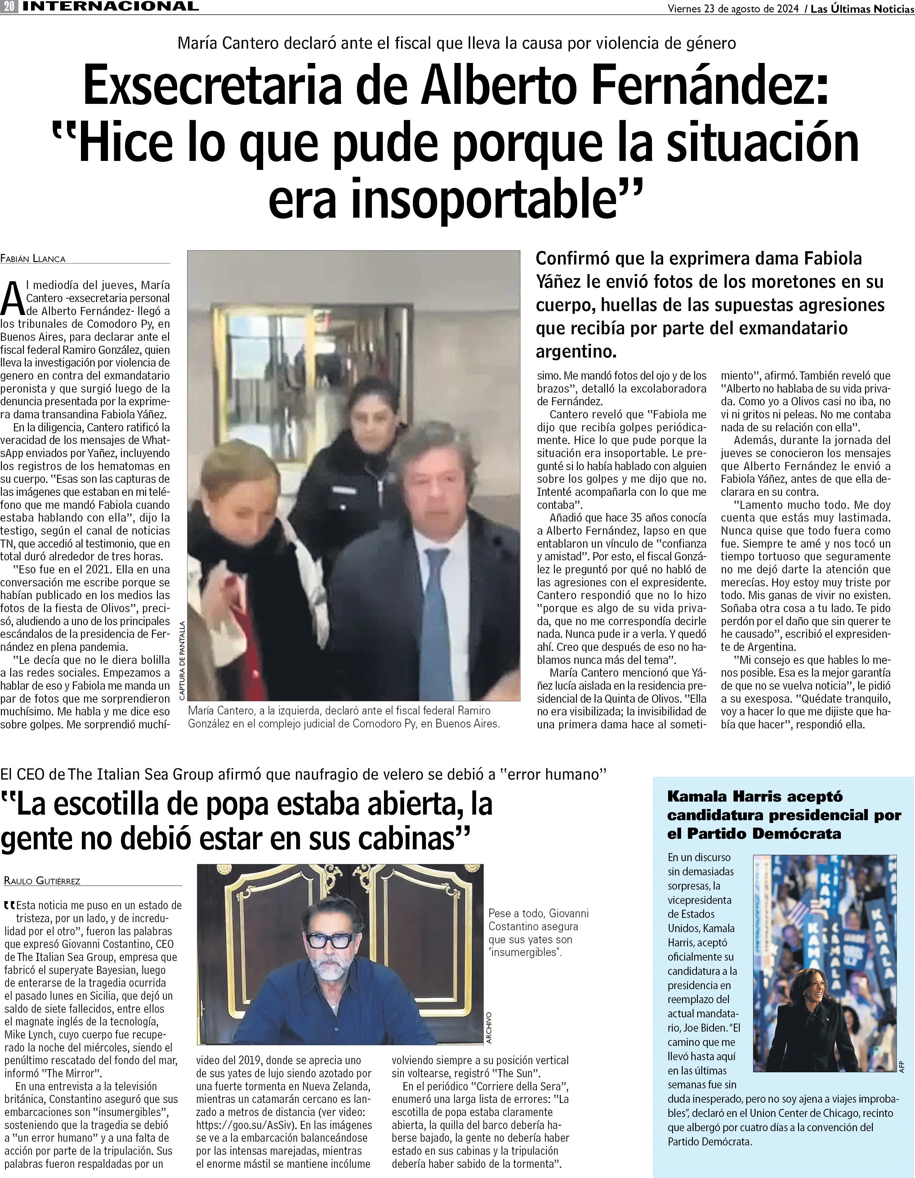 Las declaraciones de la ex secretaria de Alberto Fernández ante la justicia argentina