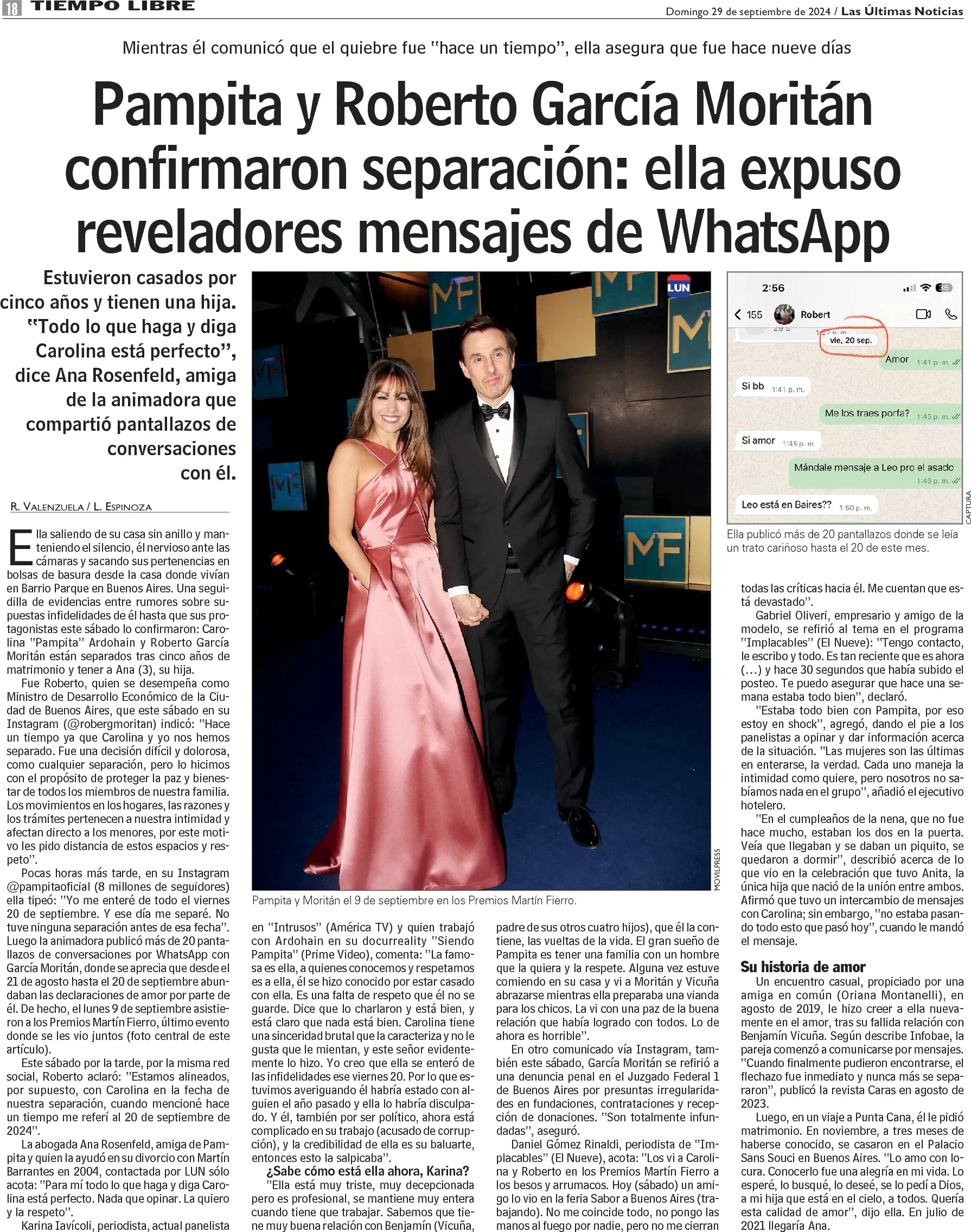 Pampita y Roberto García Moritán confirmaron separación: ella expuso reveladores mensajes de WhatsApp