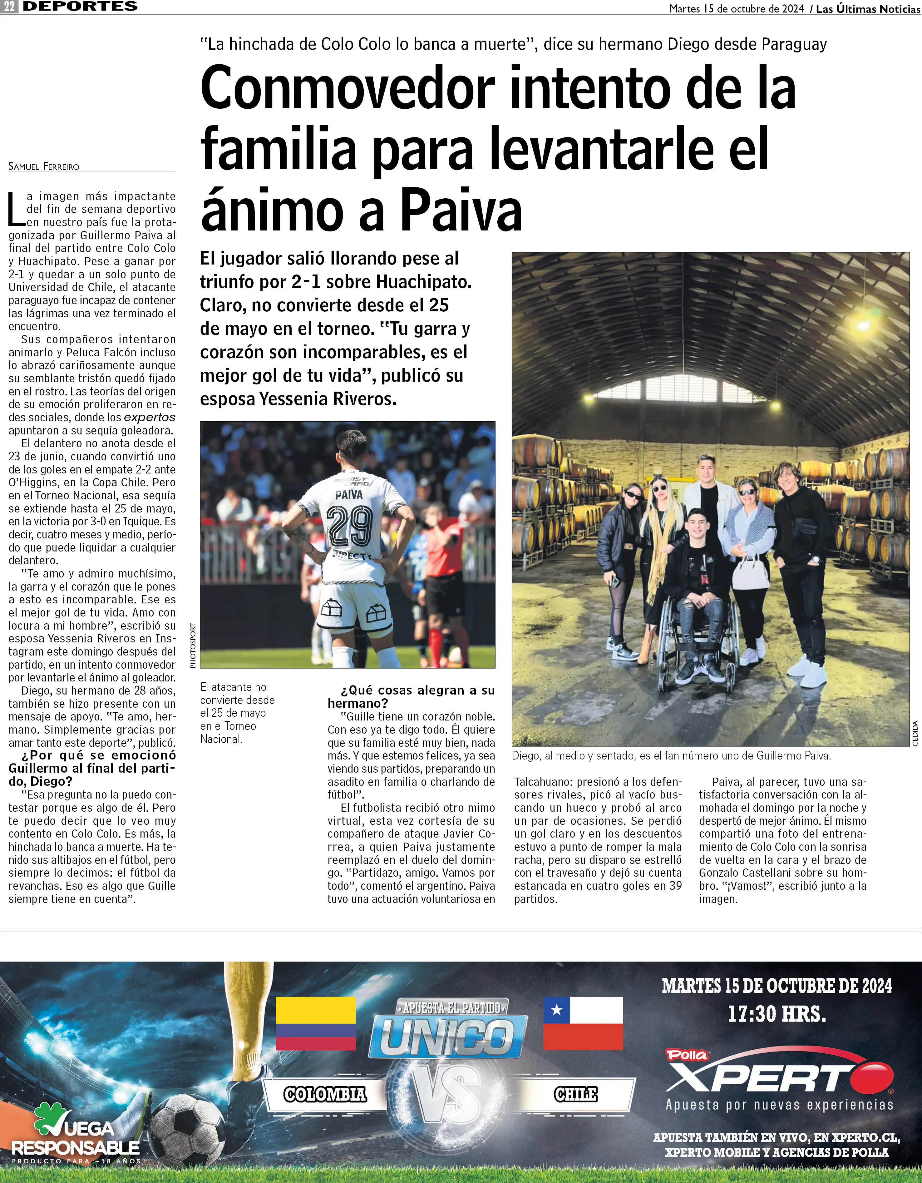 Familia le levanta el ánimo al delantero que lloró en triunfo de Colo Colo
