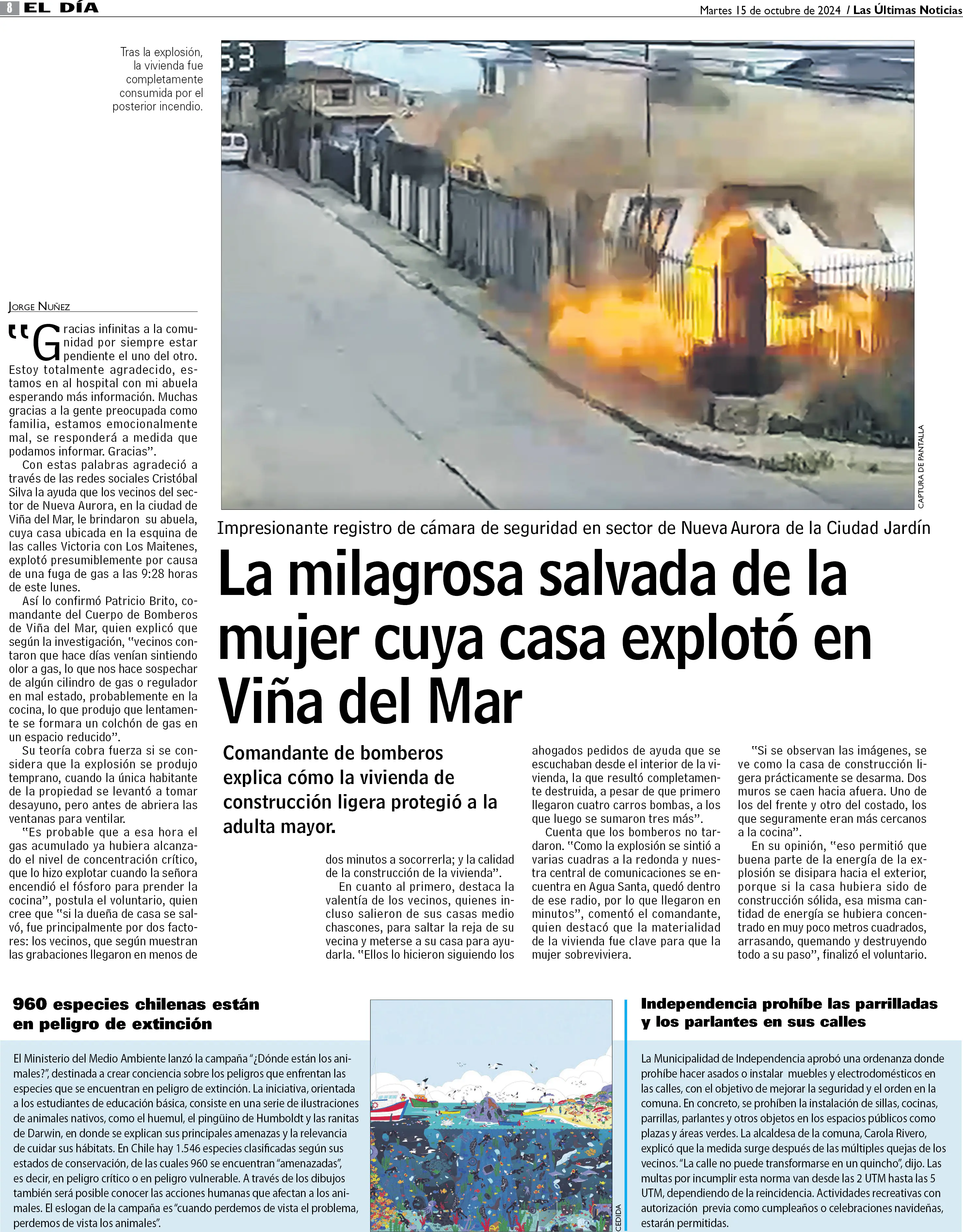 La increíble salvada de la mujer cuya casa explotó en Viña