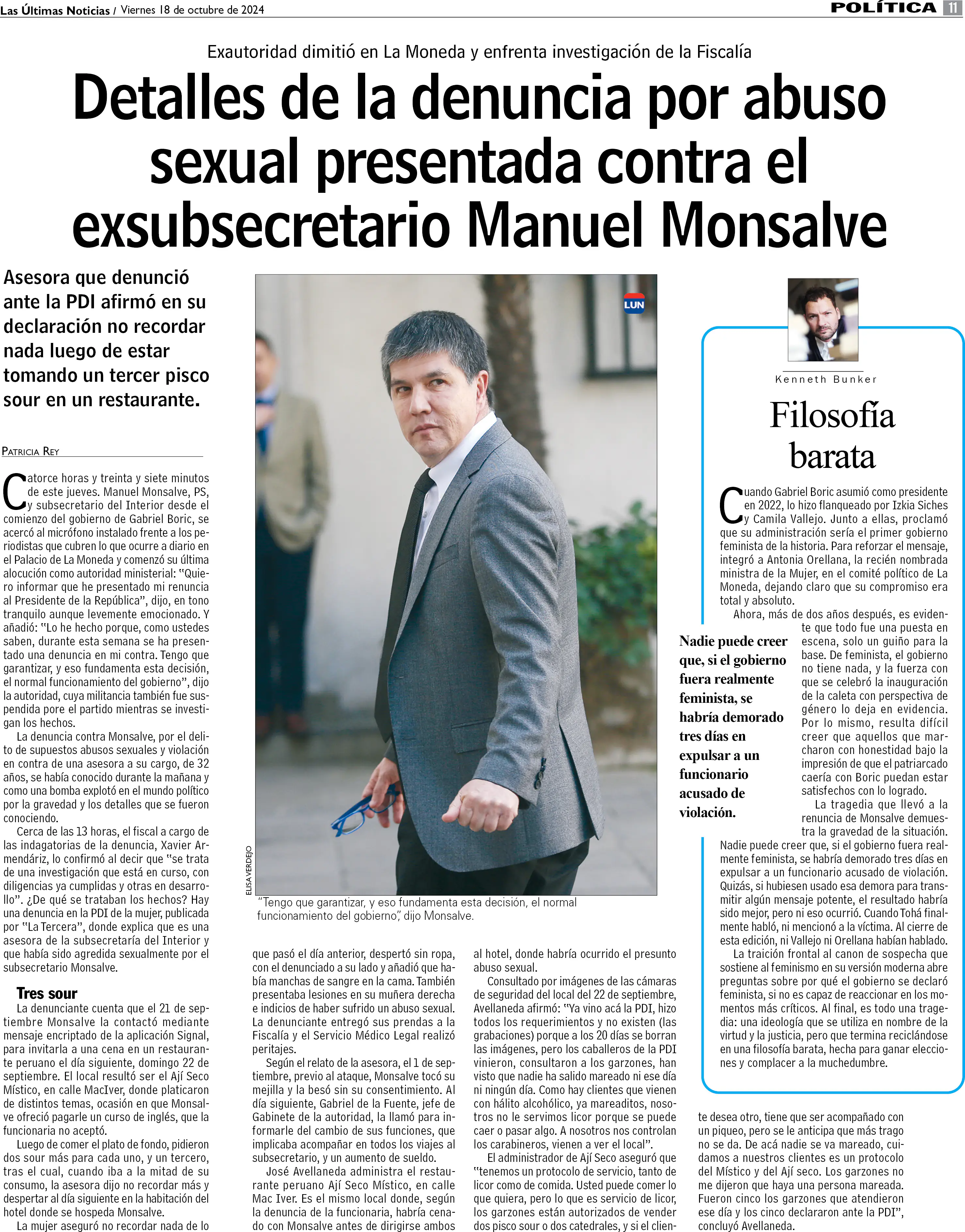 Detalles de la denuncia por abuso sexual en contra de Monsalve
