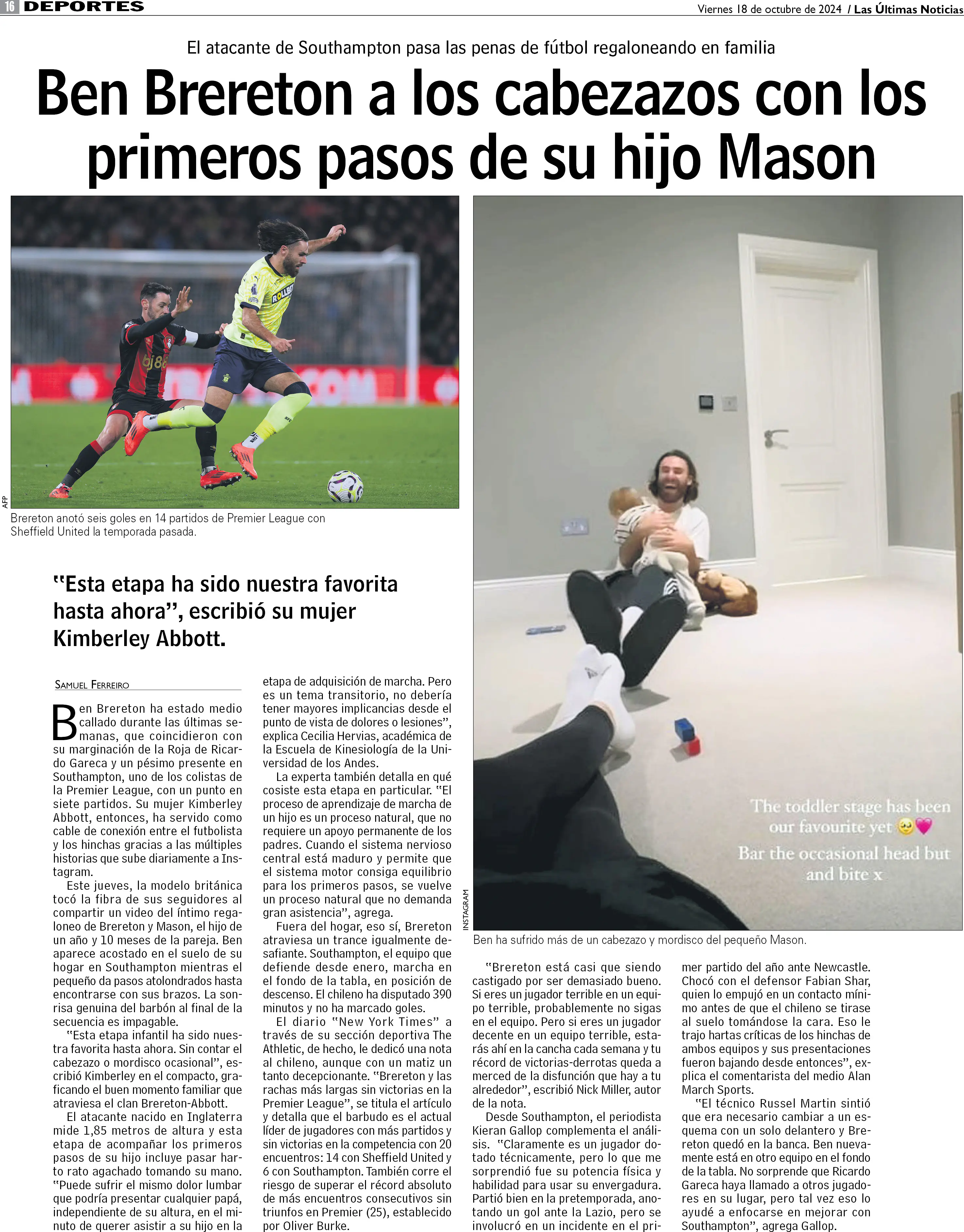 Ben Brereton a los cabezazos con los primeros pasos de su hijo Mason