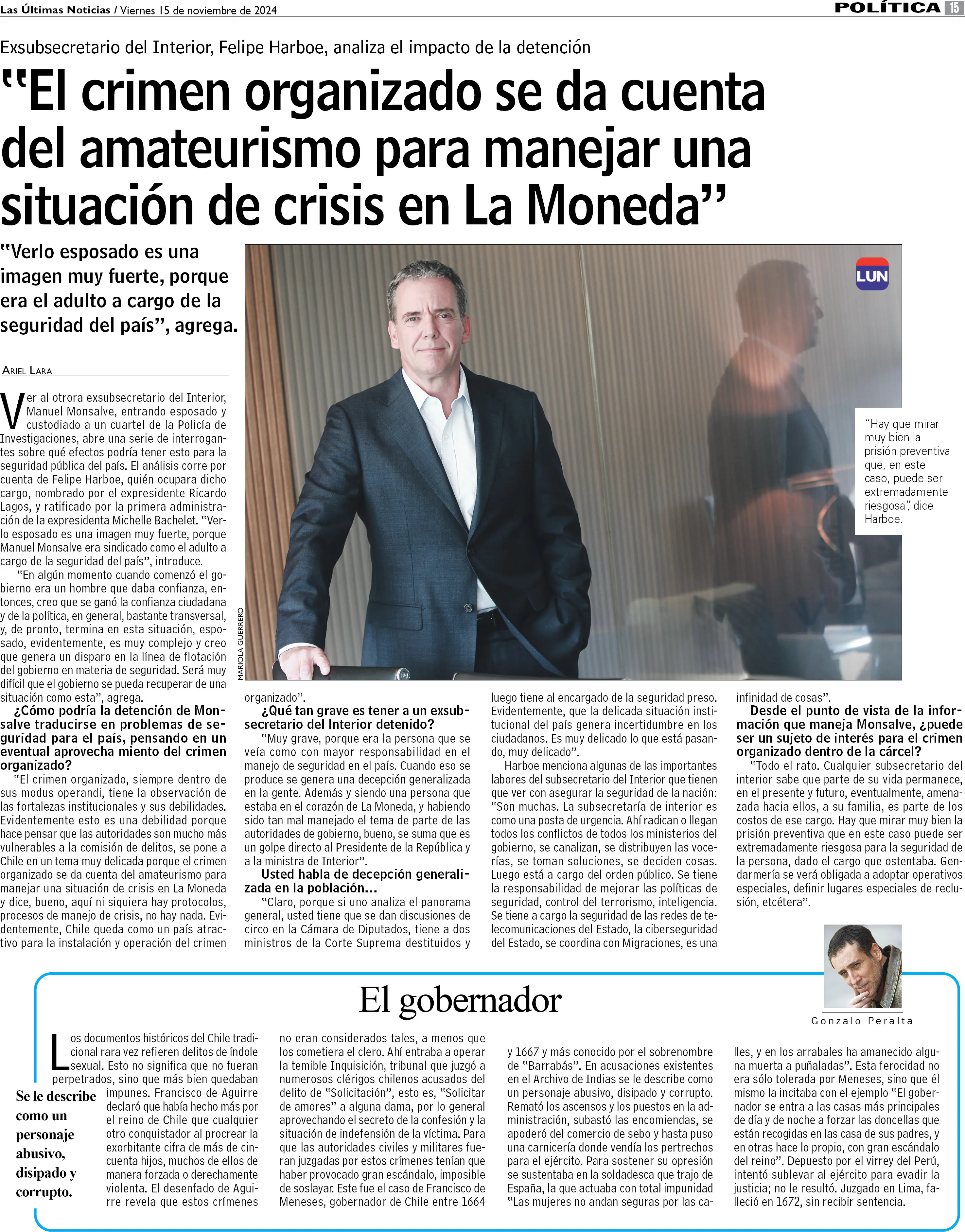 "El crimen organizado se da cuenta del amateurismo para manejar una situación de crisis en La Moneda"