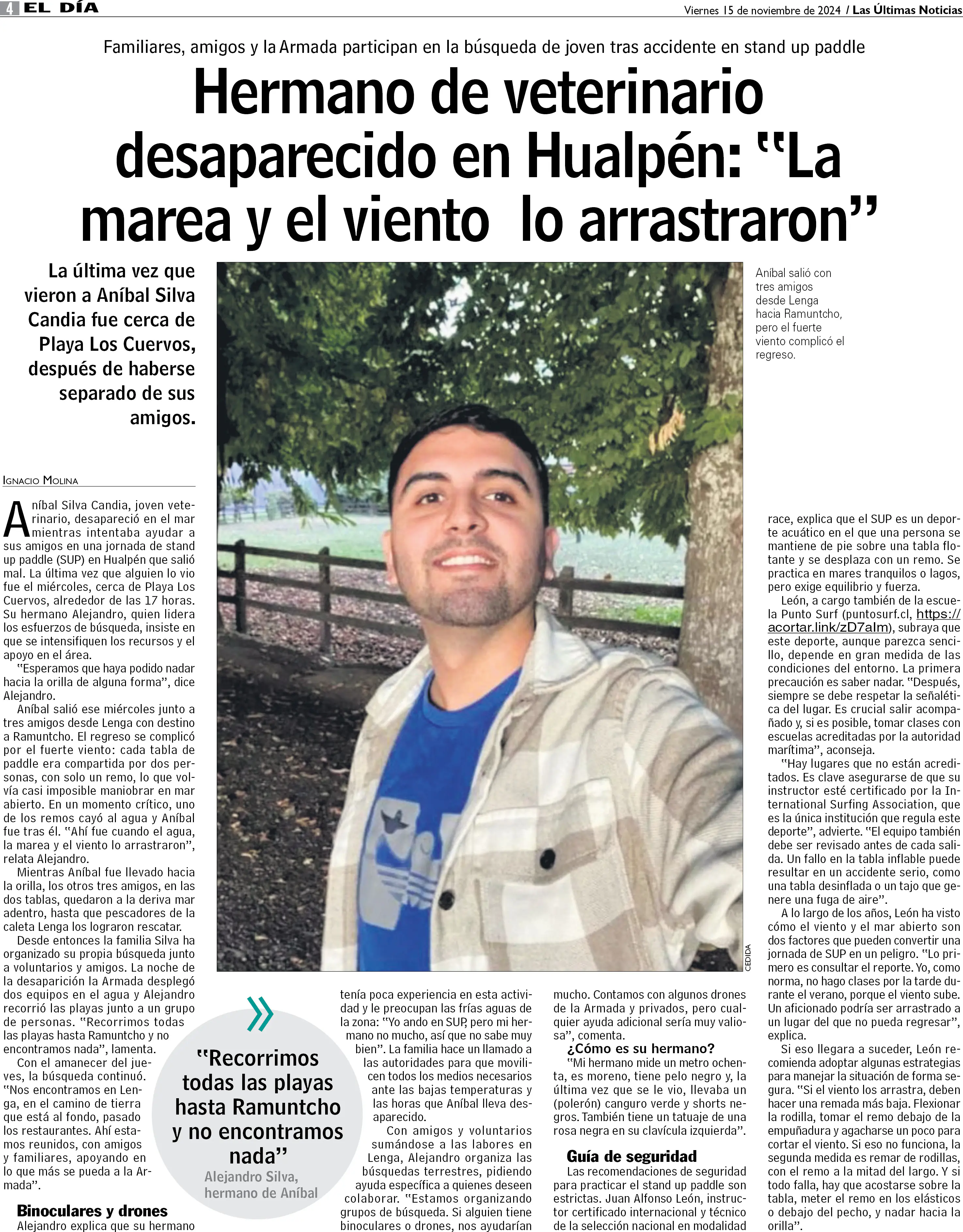 Hermano de veterinario desaparecido en Hualpén: "La marea y el viento lo arrastraron"