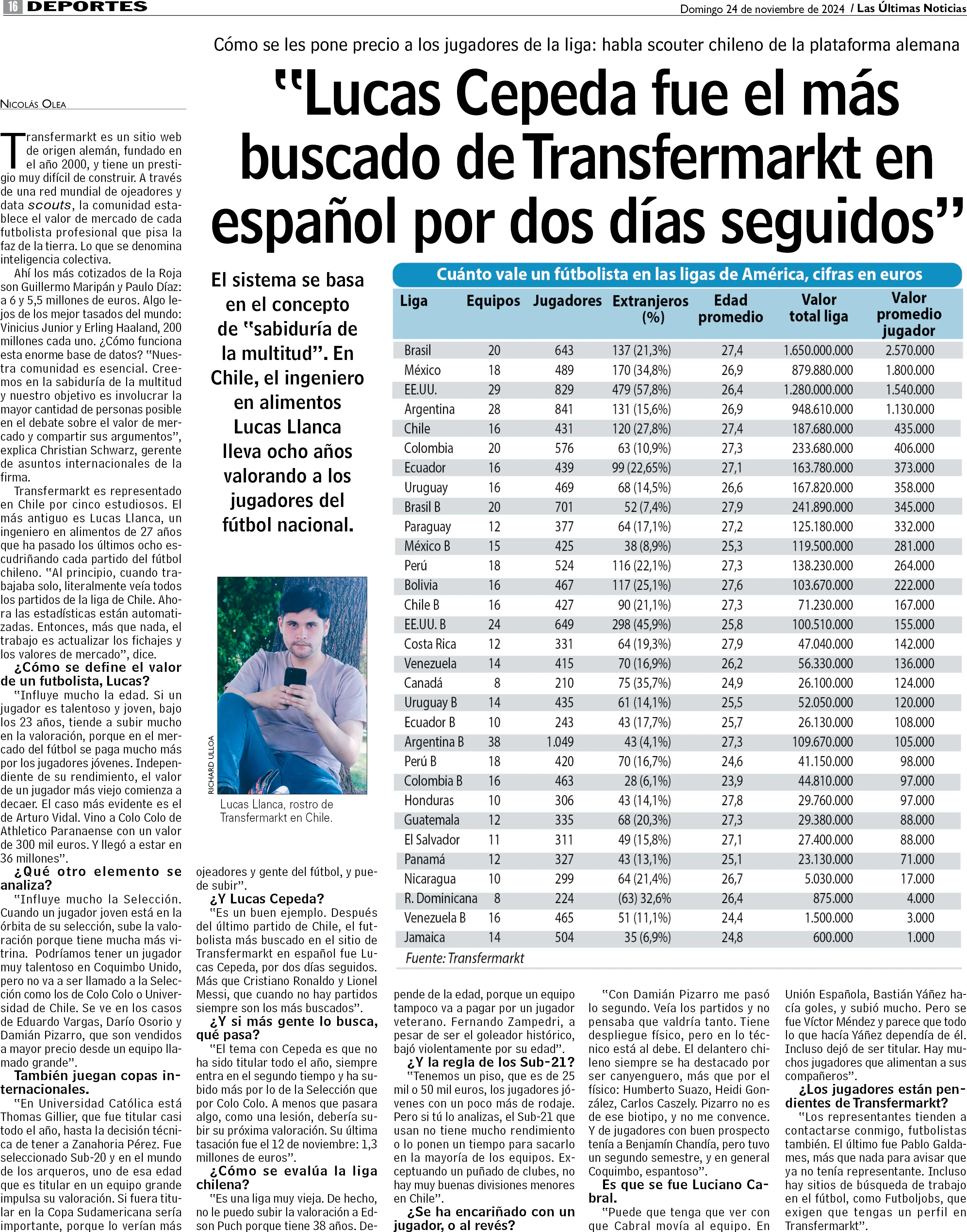 "Lucas Cepeda fue el más buscado de Transfermarkt en español por dos días seguidos"