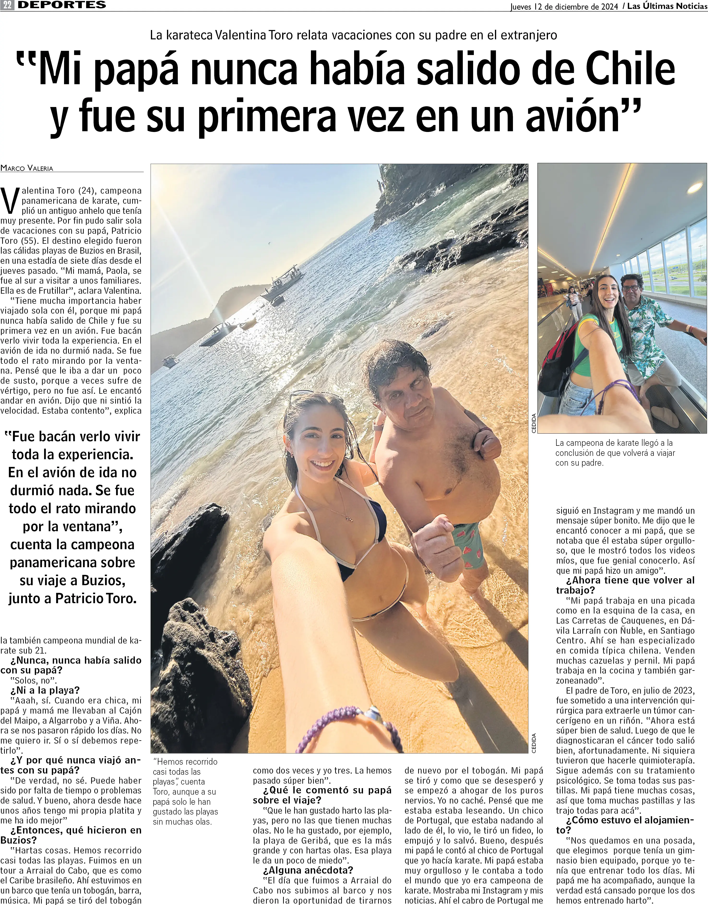 "Mi papá nunca había salido de Chile y fue su primera vez en un avión"