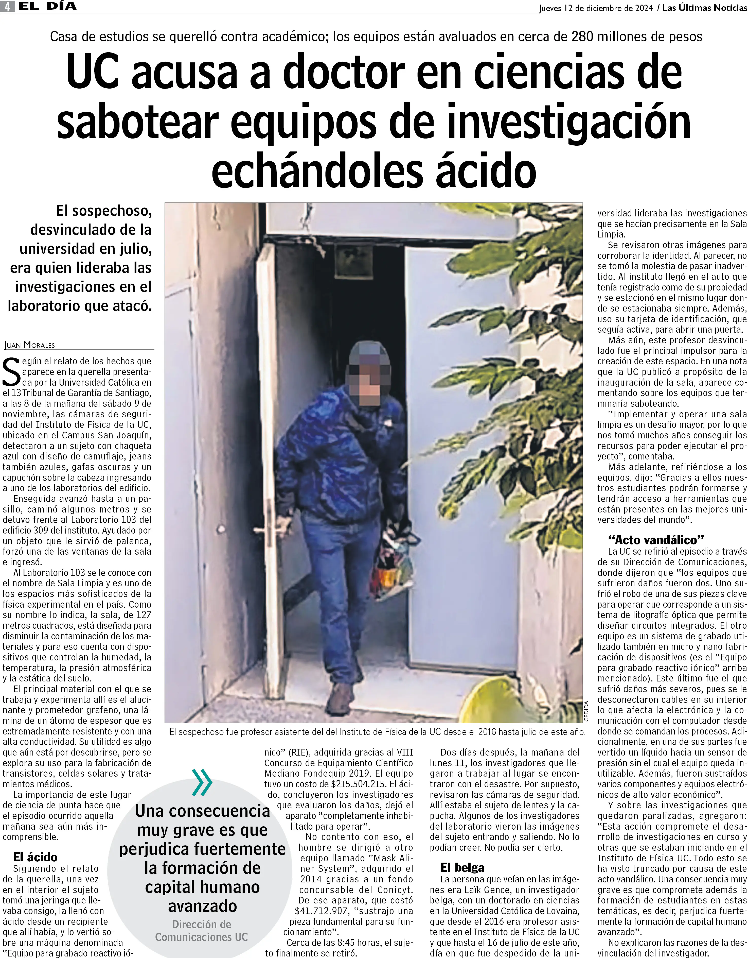 UC acusa a doctor en ciencias de sabotear equipos de investigación echándoles ácido