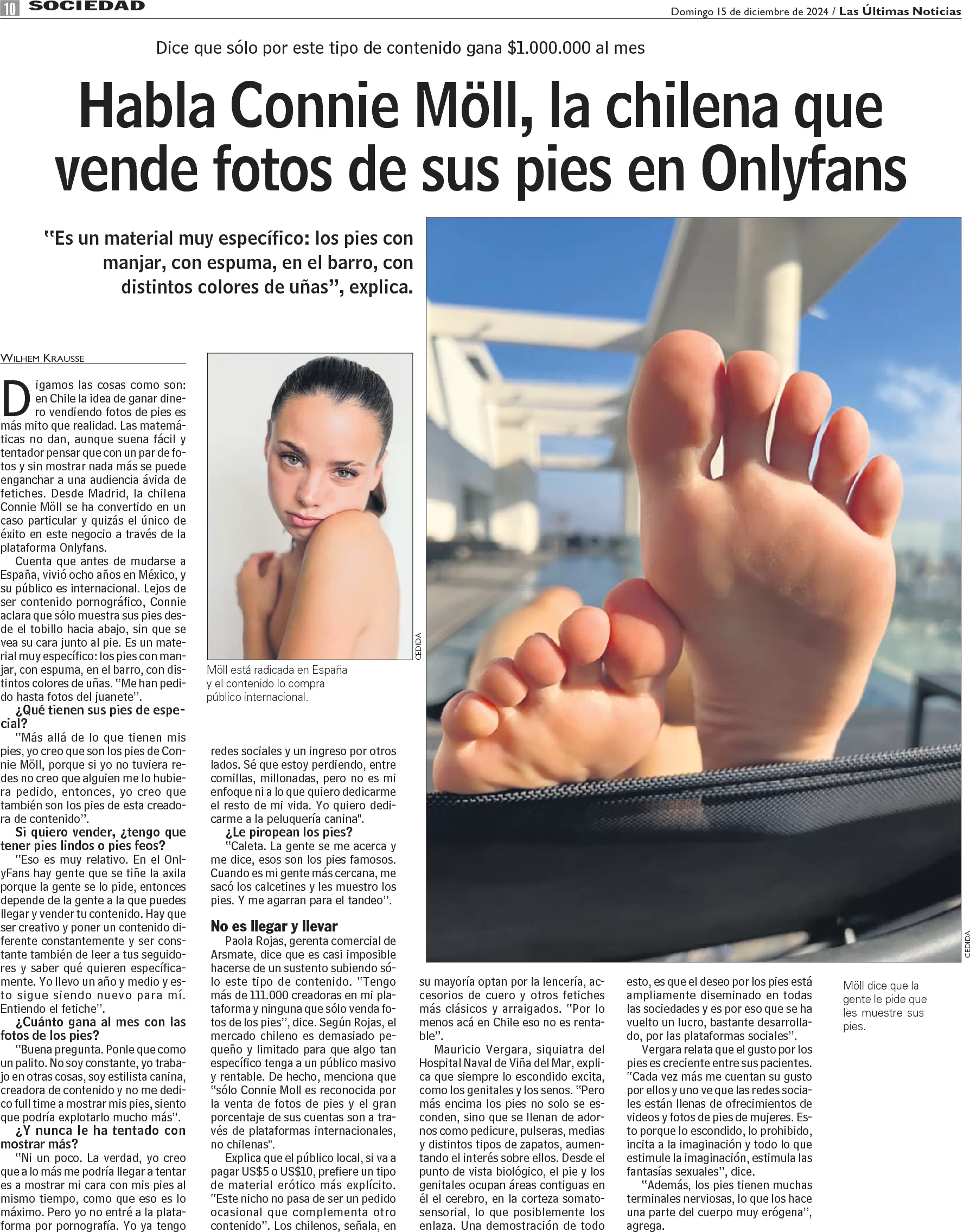 Habla Connie Möll, la chilena que vende fotos de sus pies en Onlyfans