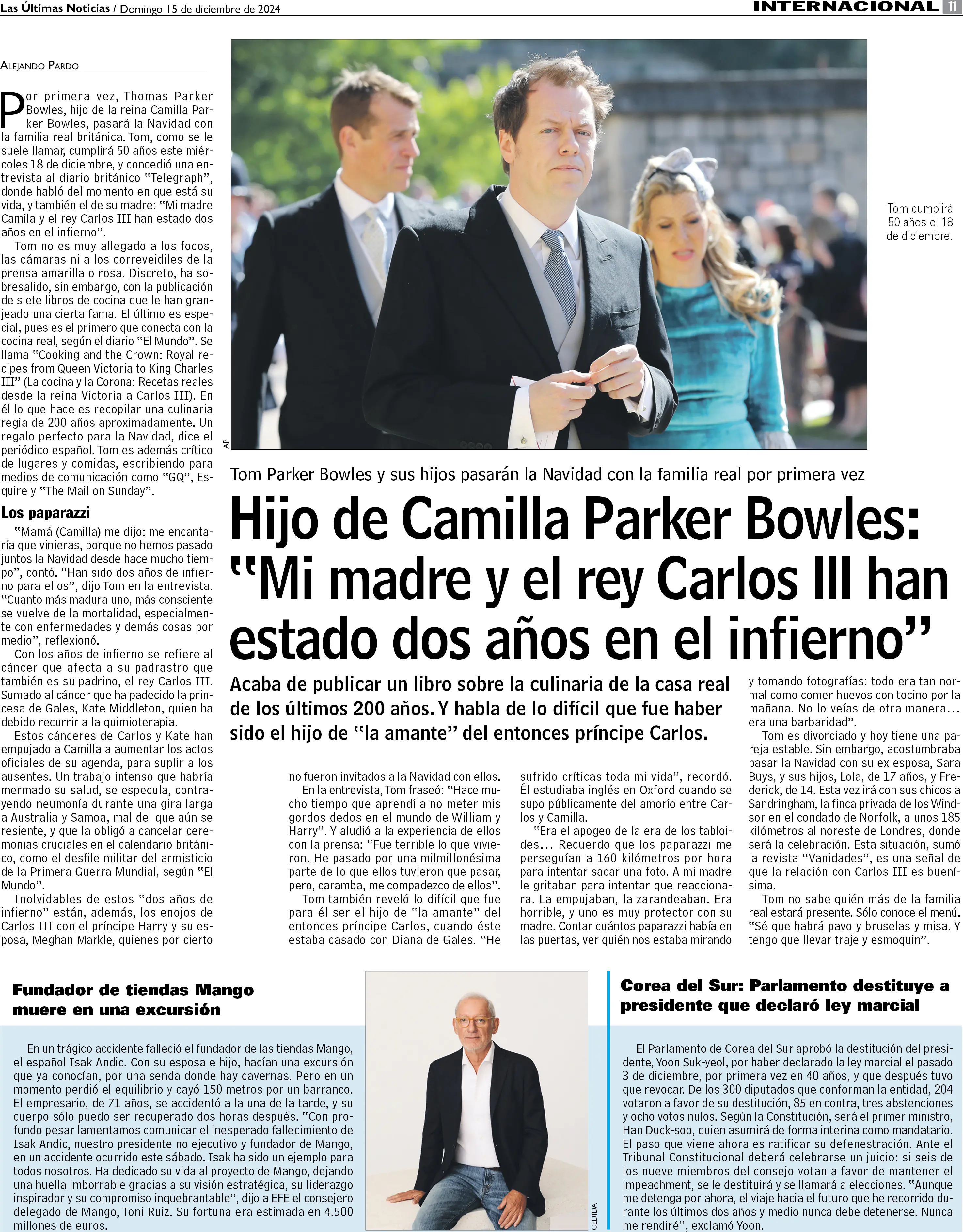 Hijo de Camilla Parker Bowles: "Mi madre y el rey Carlos III han estado en el infierno"