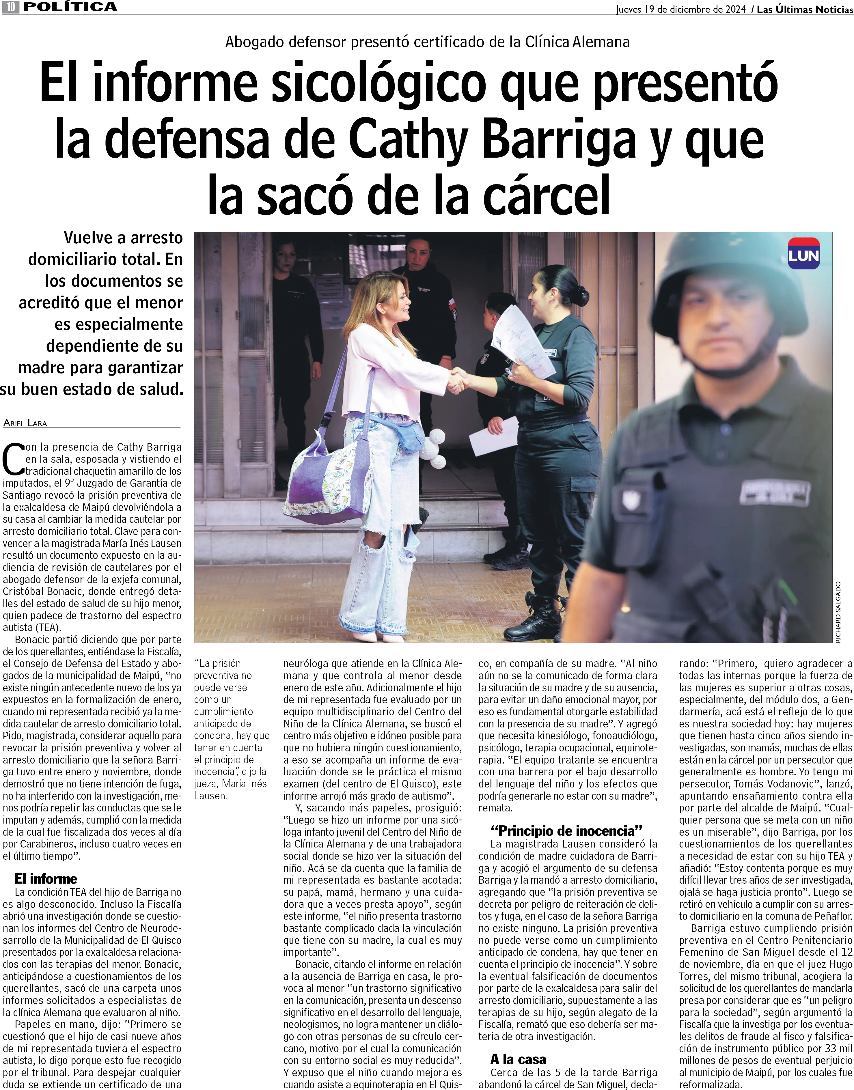 El informe sicológico que presentó la defensa de Cathy Barriga y que la sacó de la cárcel