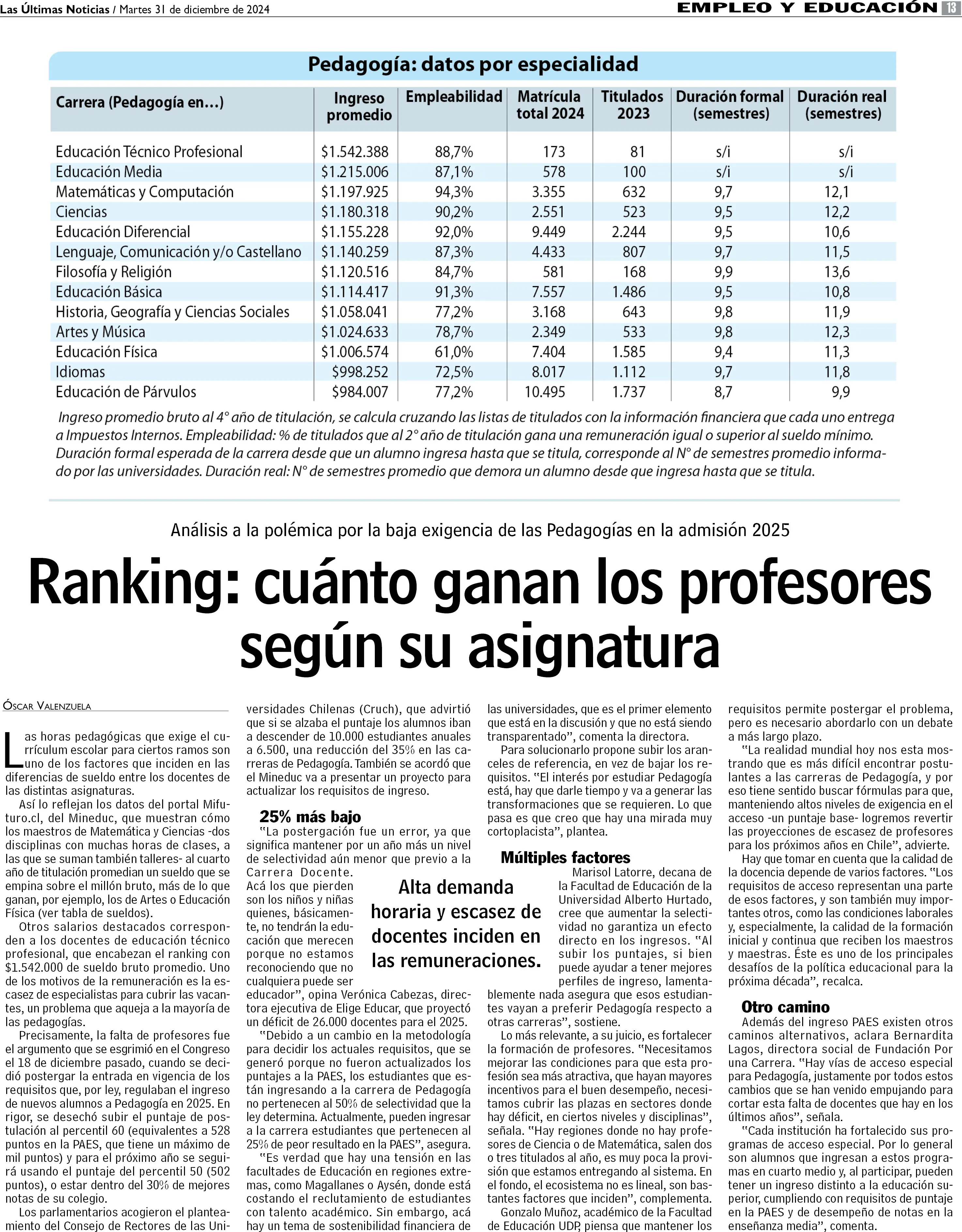 Ranking: cuánto ganan los profesores según su asignatura