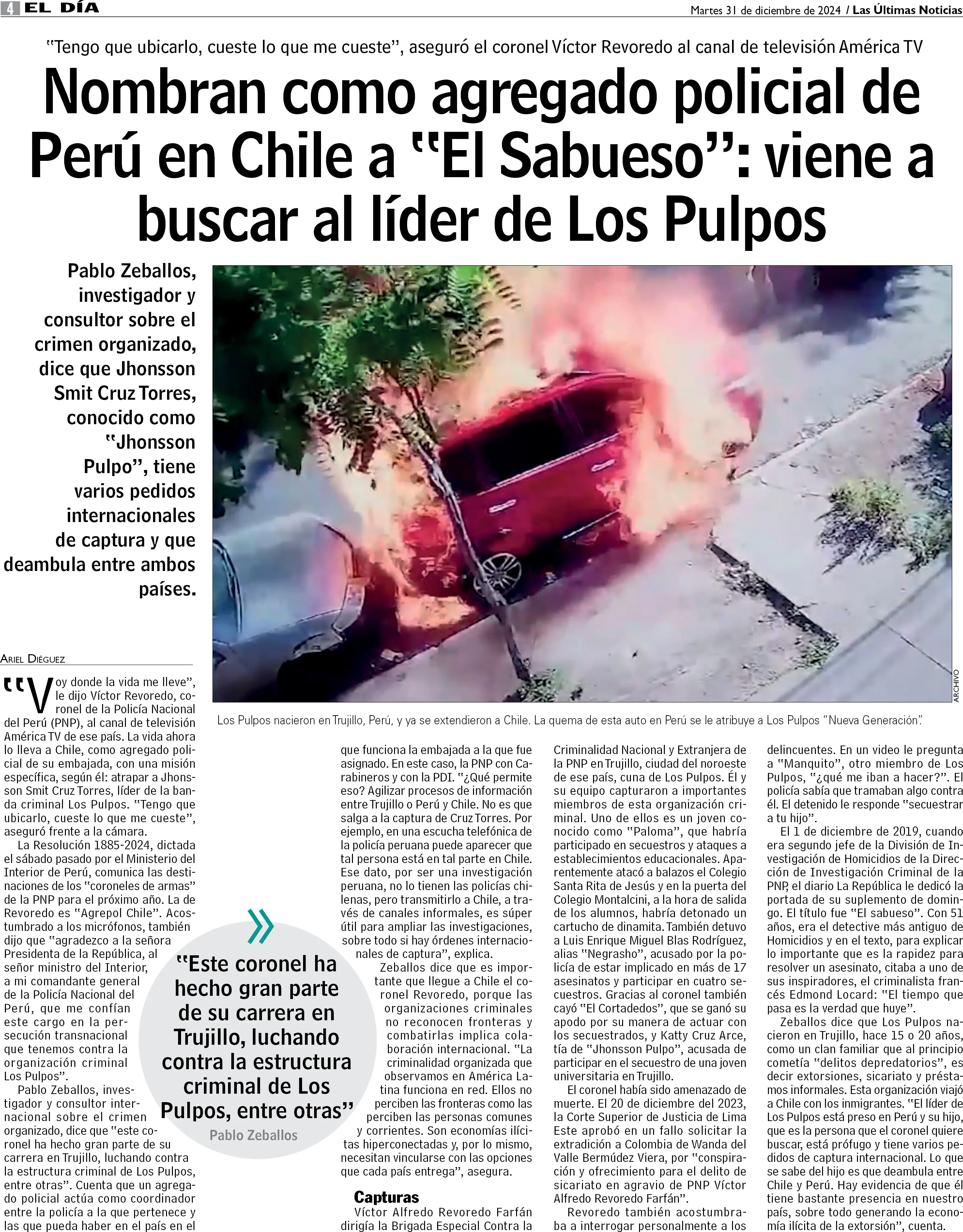 Policía peruano viene a buscar a líder de Los Pulpos: "Tengo que ubicarlo, cueste lo que cueste"