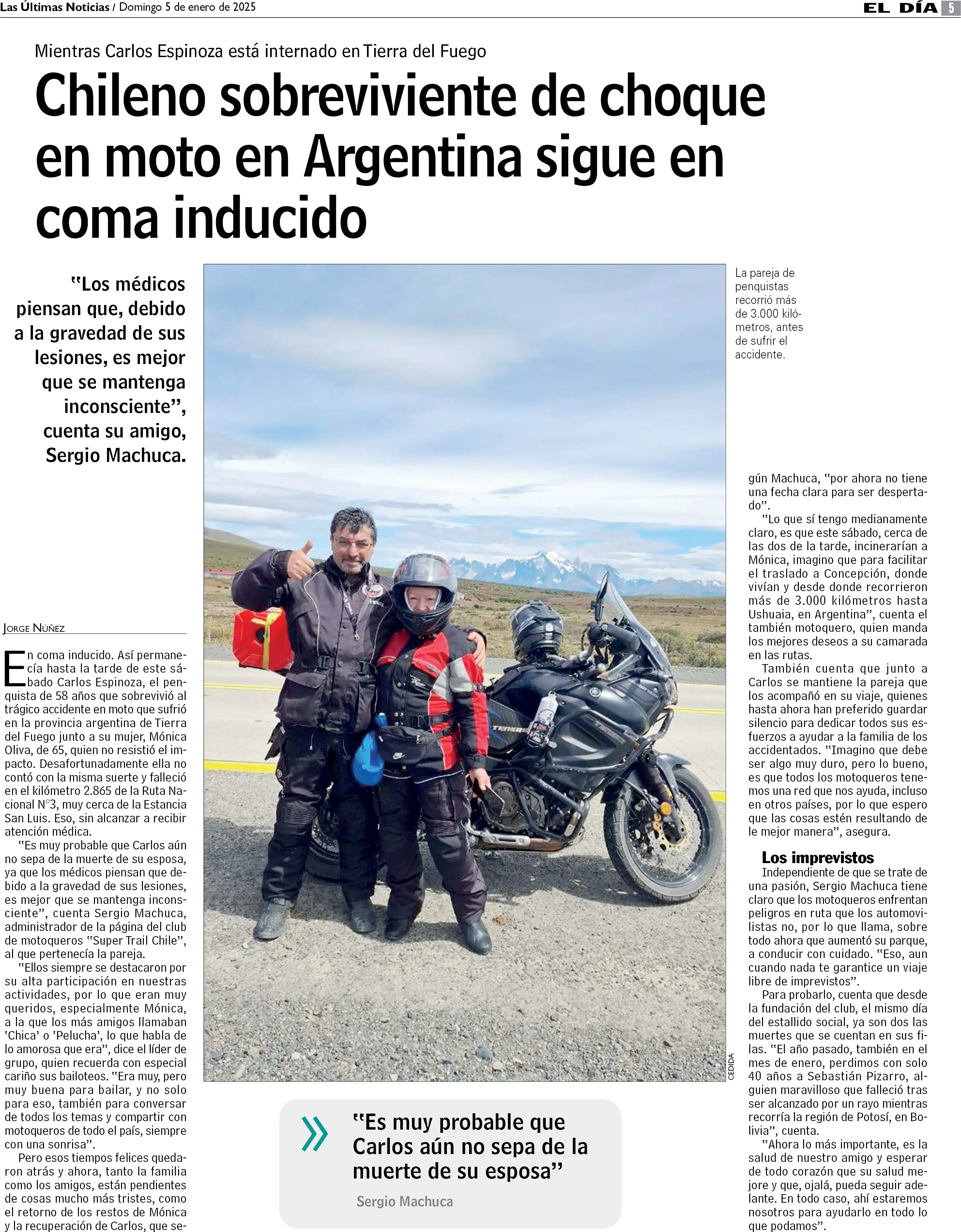 Chileno sobreviviente de choque en moto en Argentina sigue en coma inducido