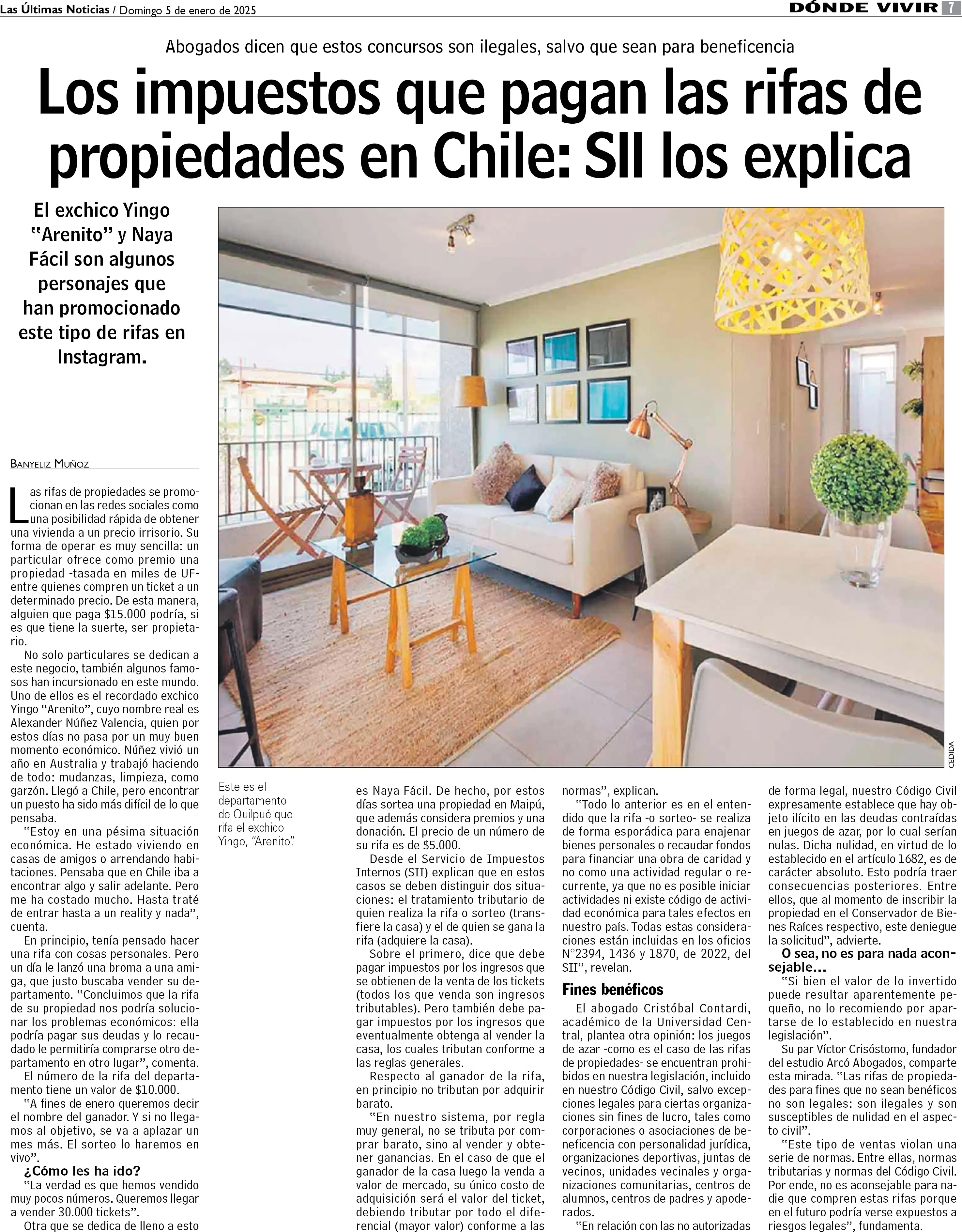 Los impuestos que pagan las rifas de propiedades en Chile: SII los explica
