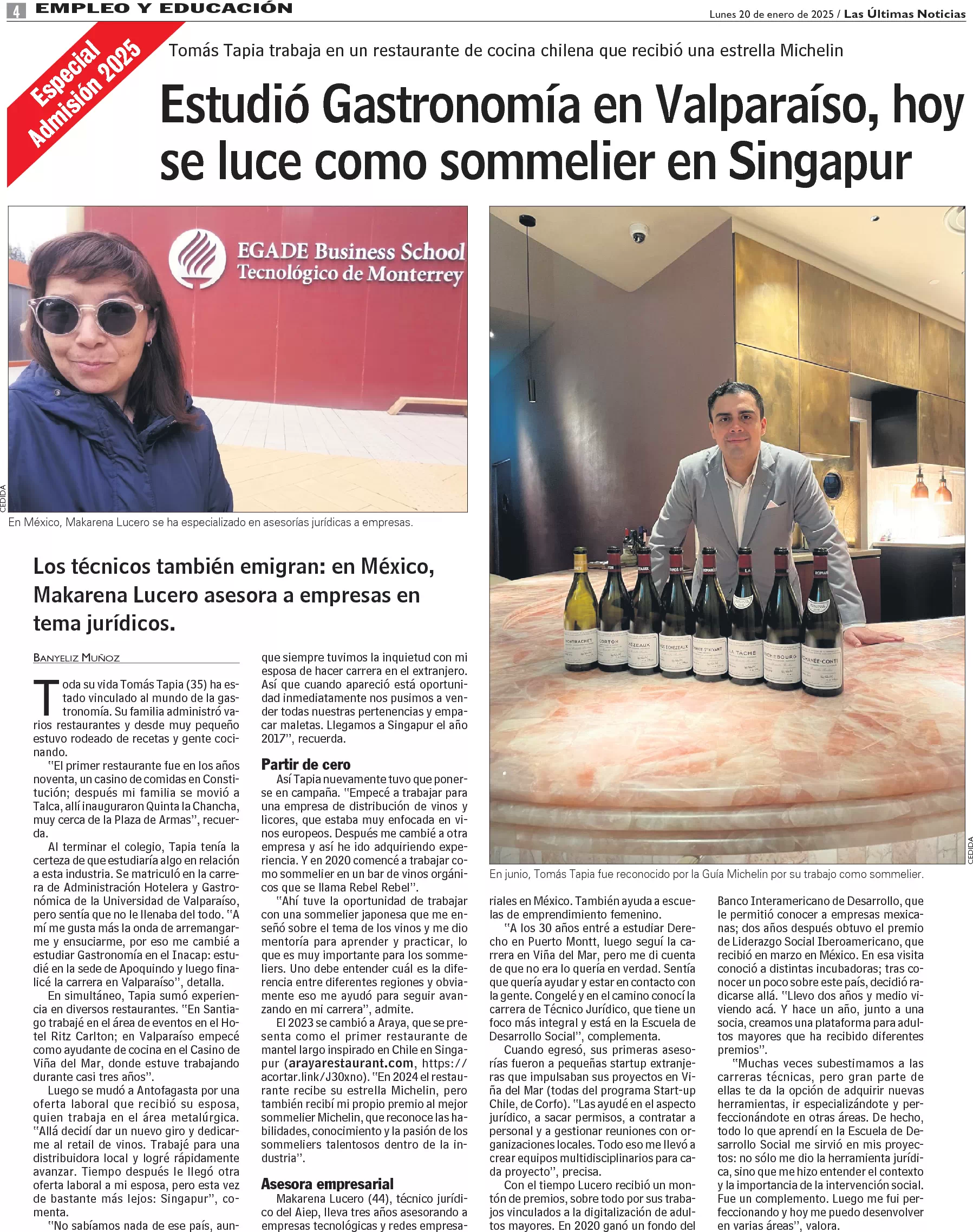 Estudió Gastronomía en Valparaíso, hoy se luce como sommelier en Singapur