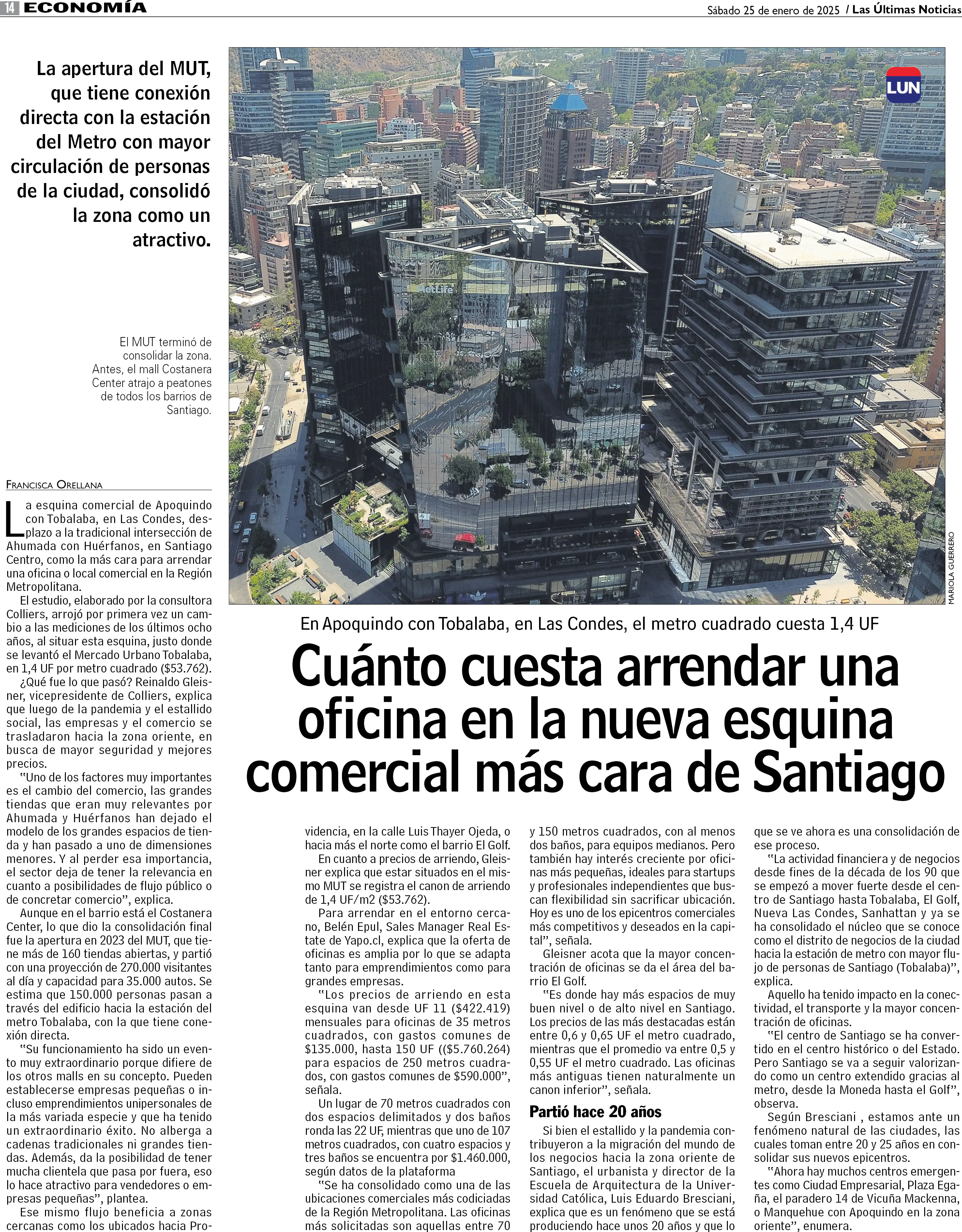 Cuánto cuesta arrendar una oficina en la nueva esquina comercial más cara de Santiago