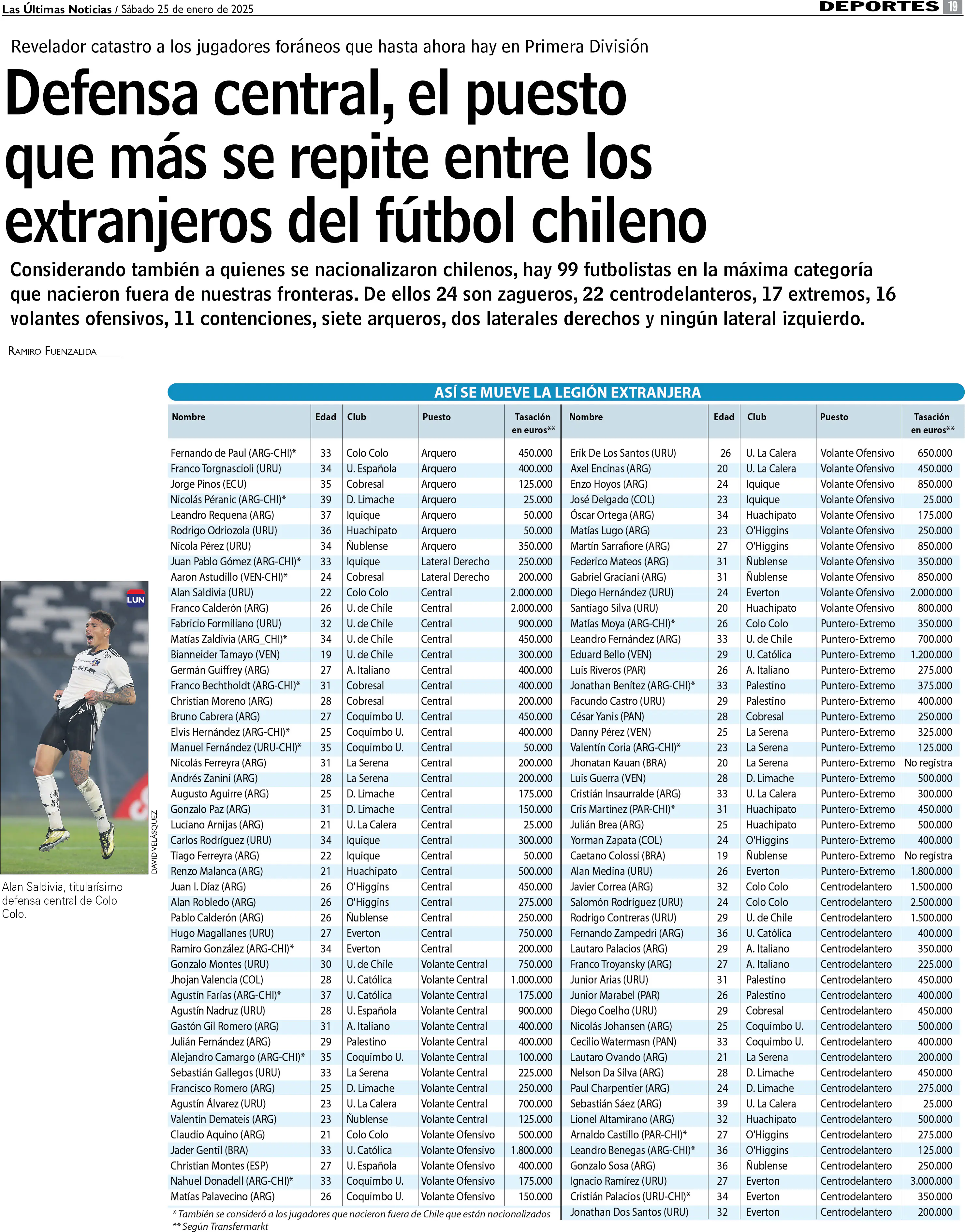 Puesto por puesto: tabla con los 99 extranjeros del fútbol chileno