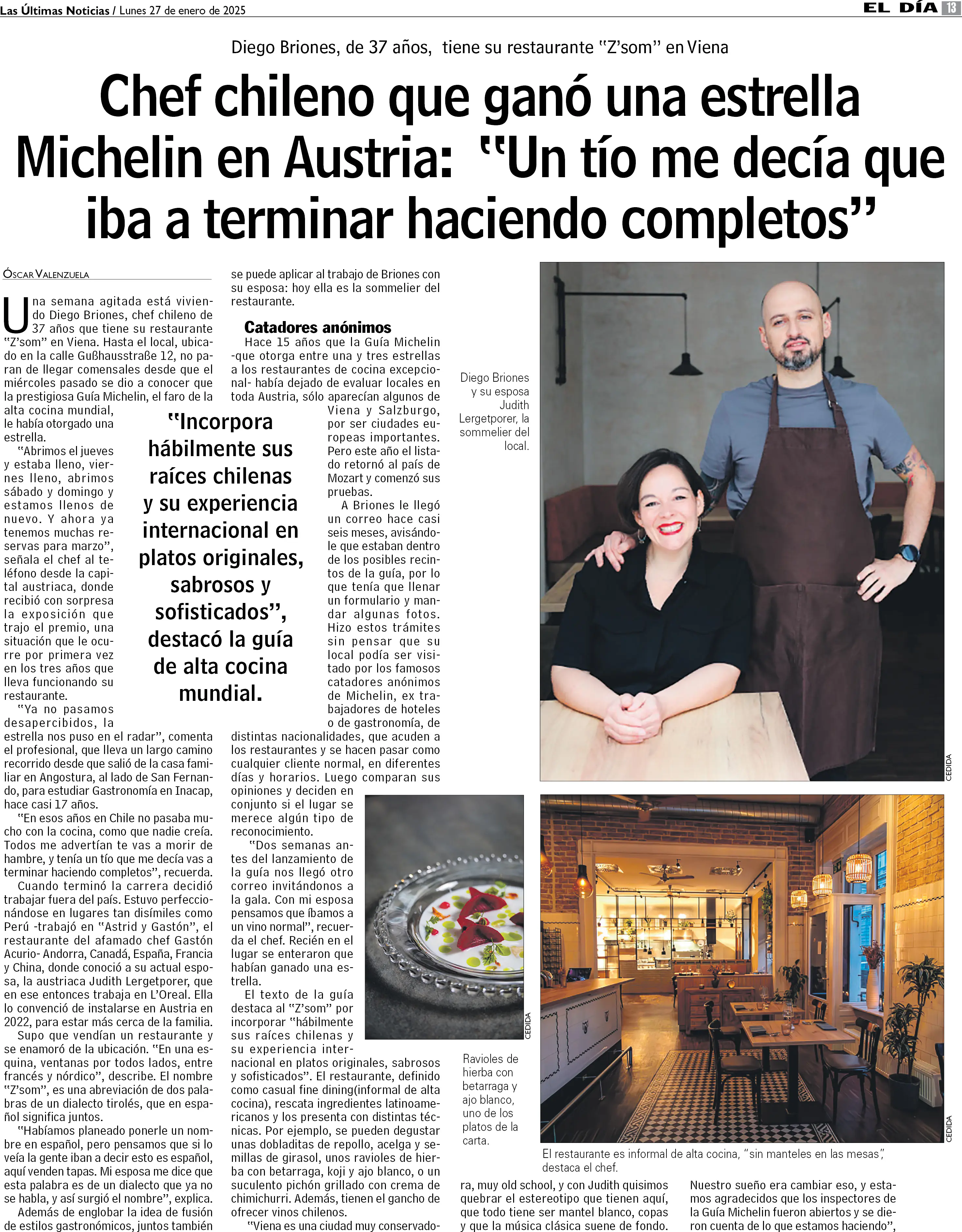 Chef chileno que ganó una estrella Michelin en Austria: "Un tío me decía que iba a terminar haciendo completos"