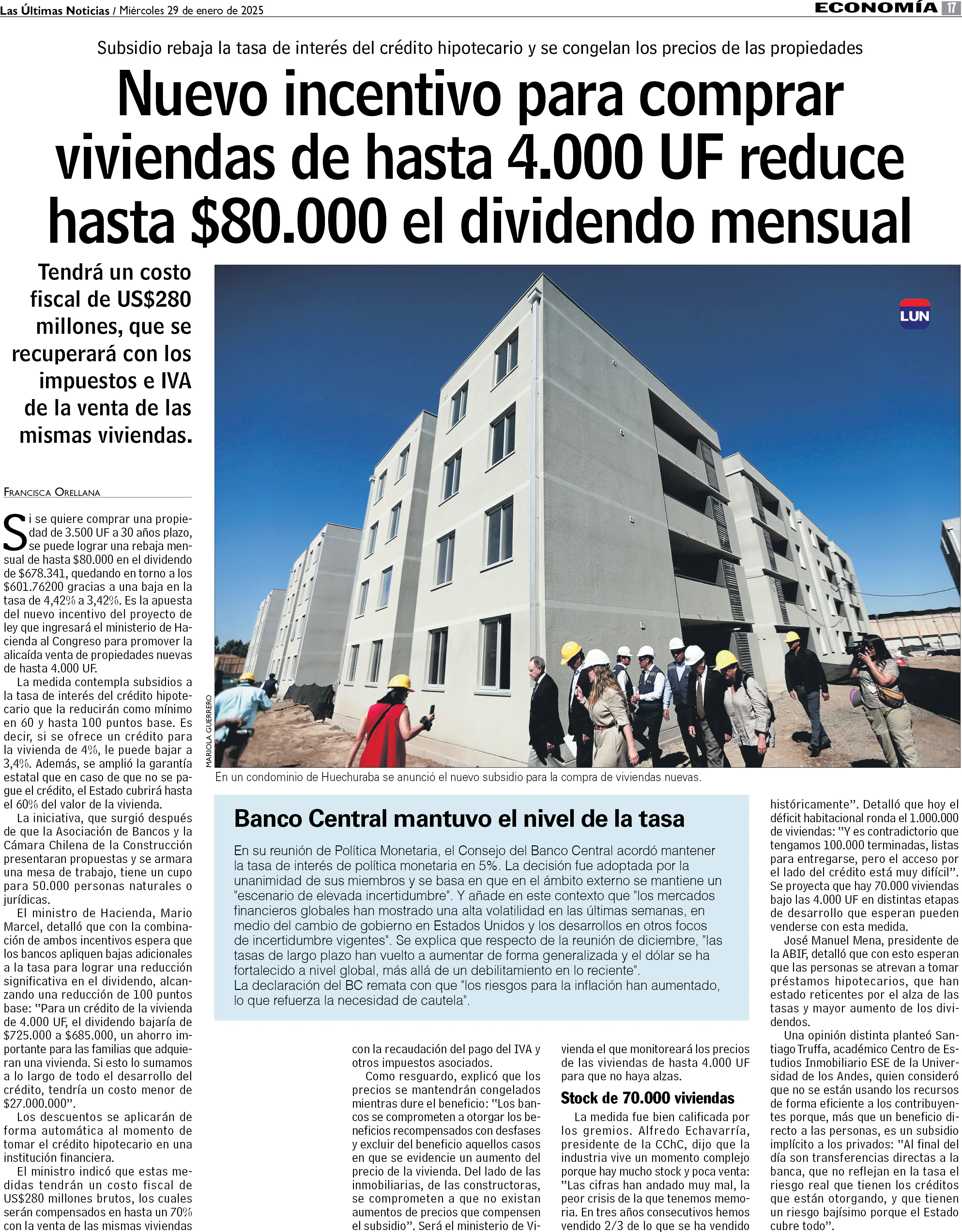 Nuevo incentivo para comprar viviendas de hasta 4.000 UF reduce hasta $80.000 el dividendo mensual