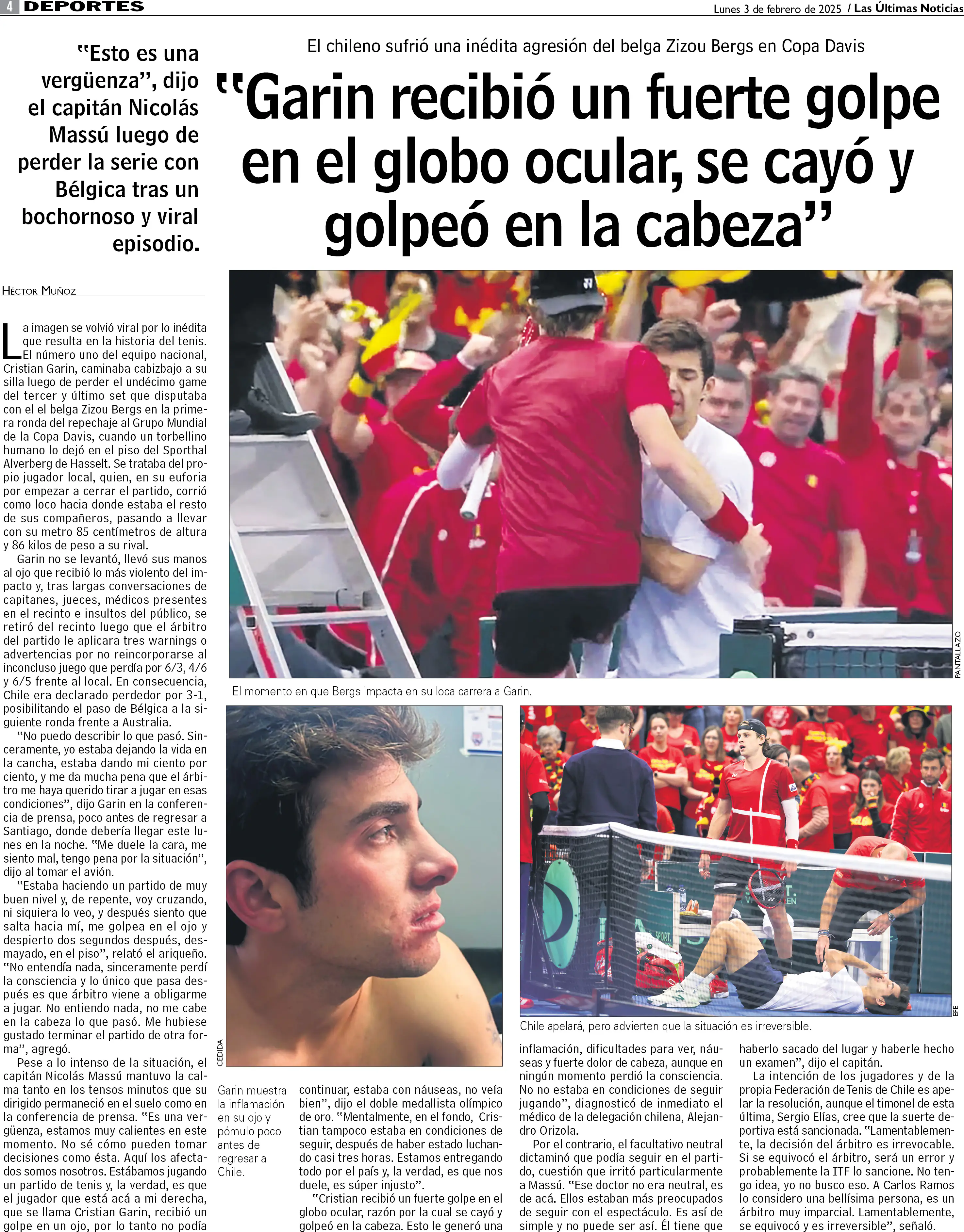 Escandalosa agresión de tenista belga a Cristian Garin