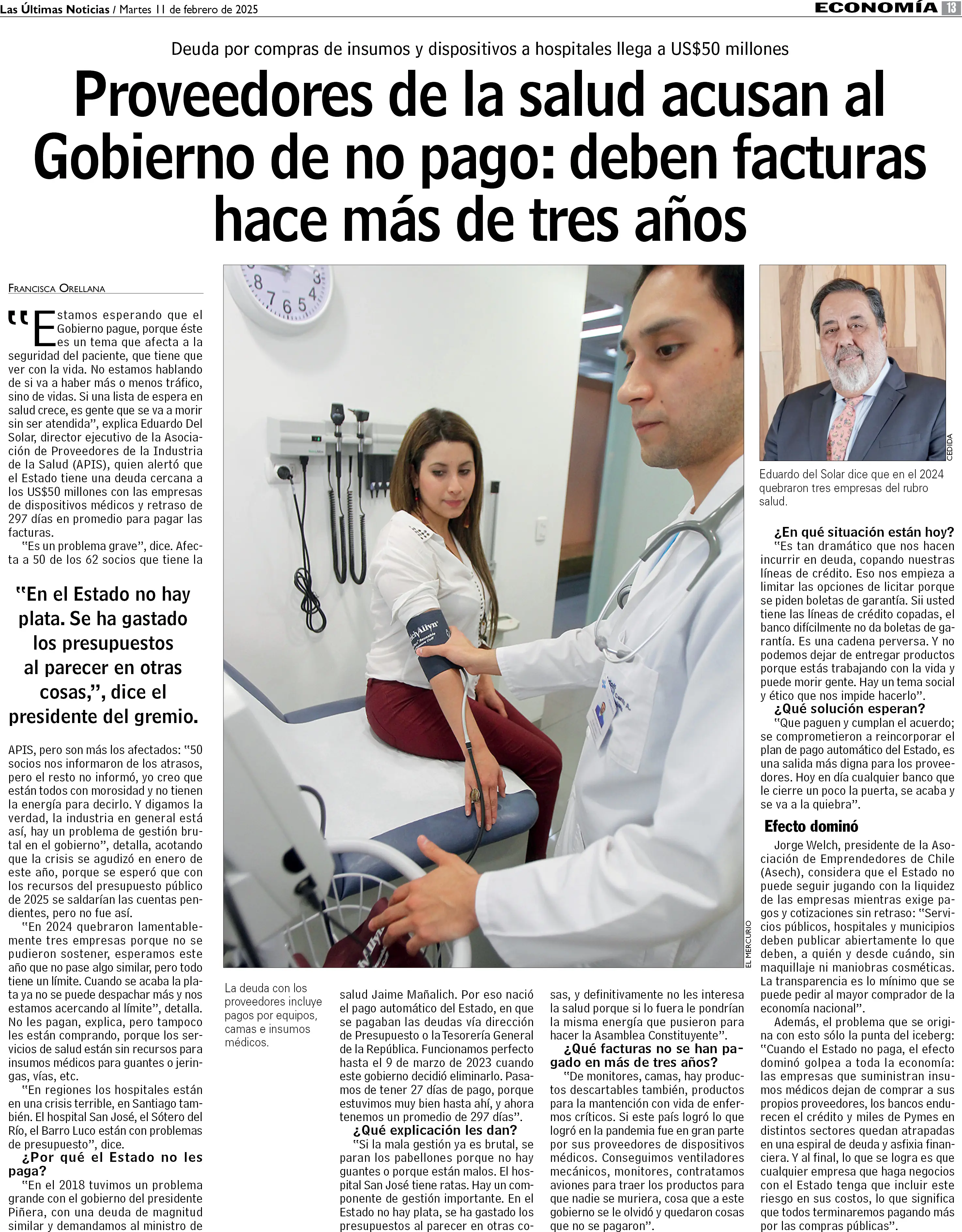 Proveedores de la salud acusan al Gobierno de no pago: deben facturas hace más de tres años