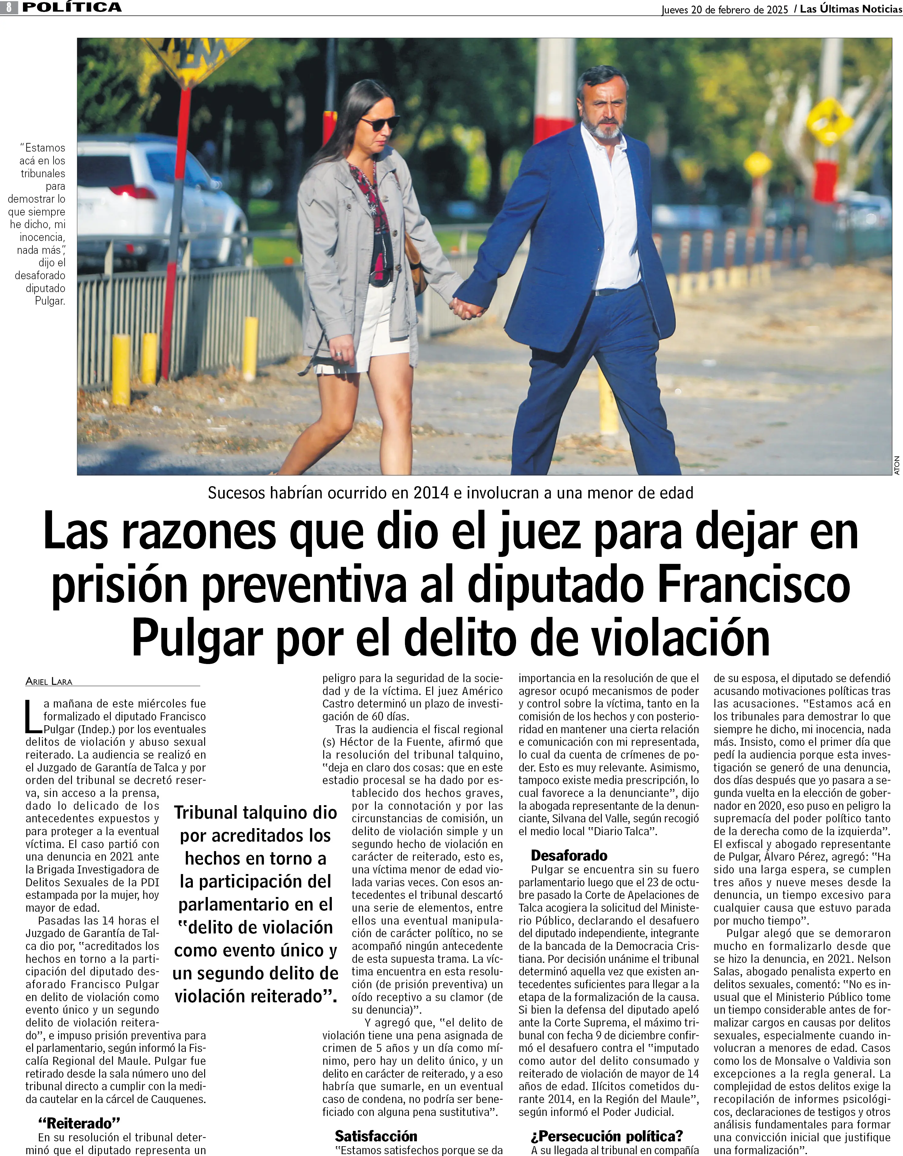 Las razones que dio el juez para dejar en prisión preventiva al diputado Francisco Pulgar por el delito de violación