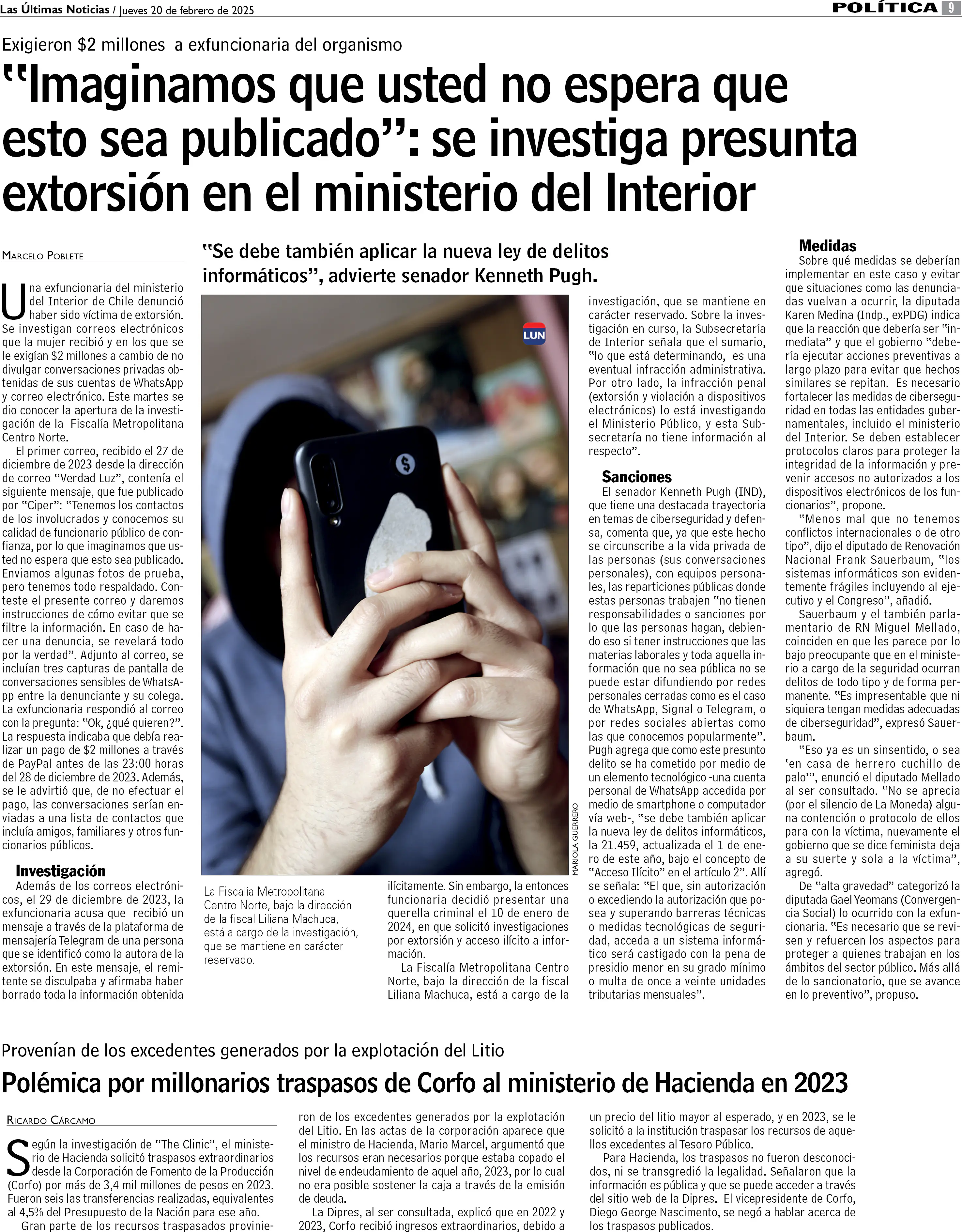 "Imaginamos que usted no espera que esto sea publicado": se investiga presunta extorsión en el ministerio del Interior
