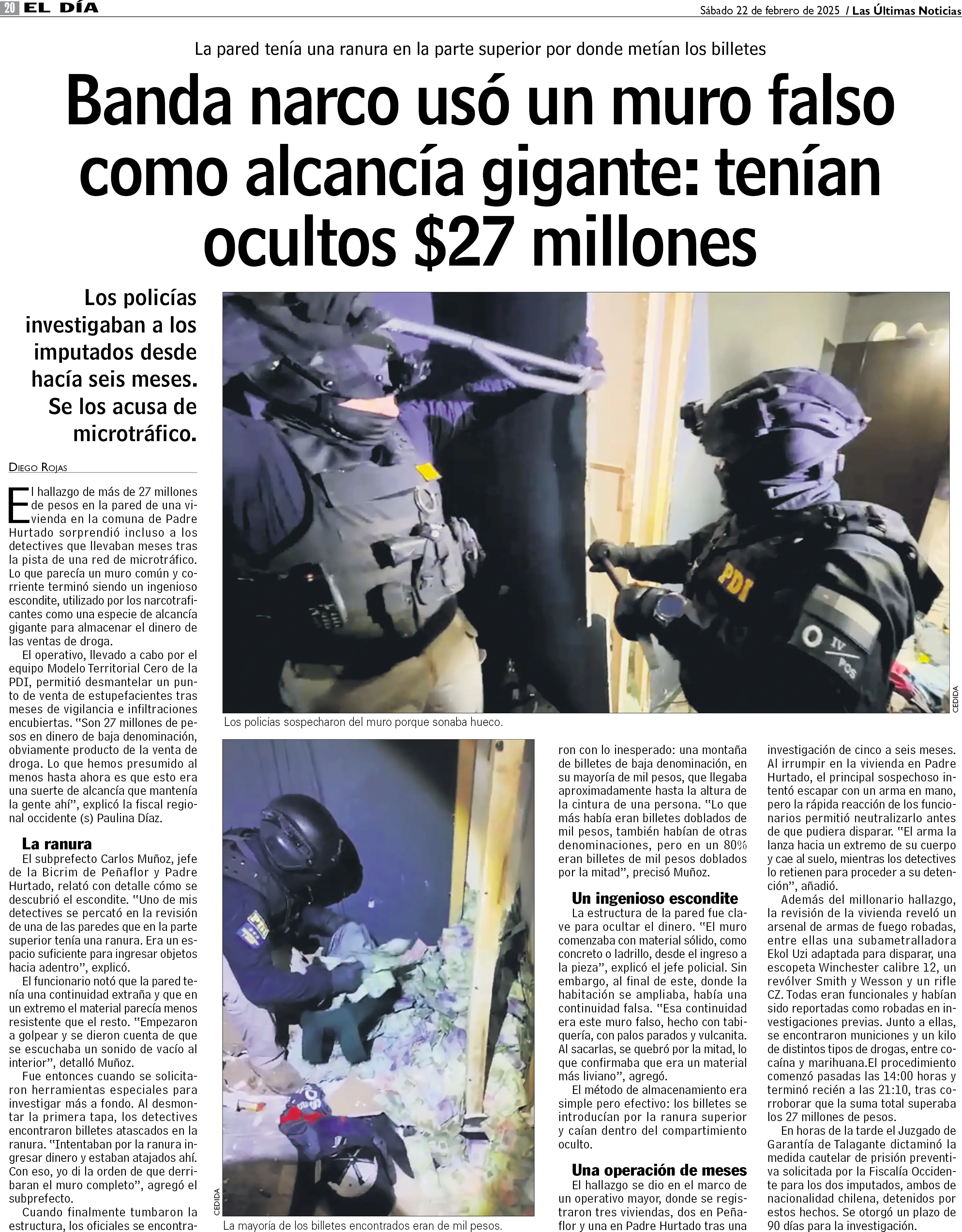 El caso de los 27 millones de pesos escondidos en una pared