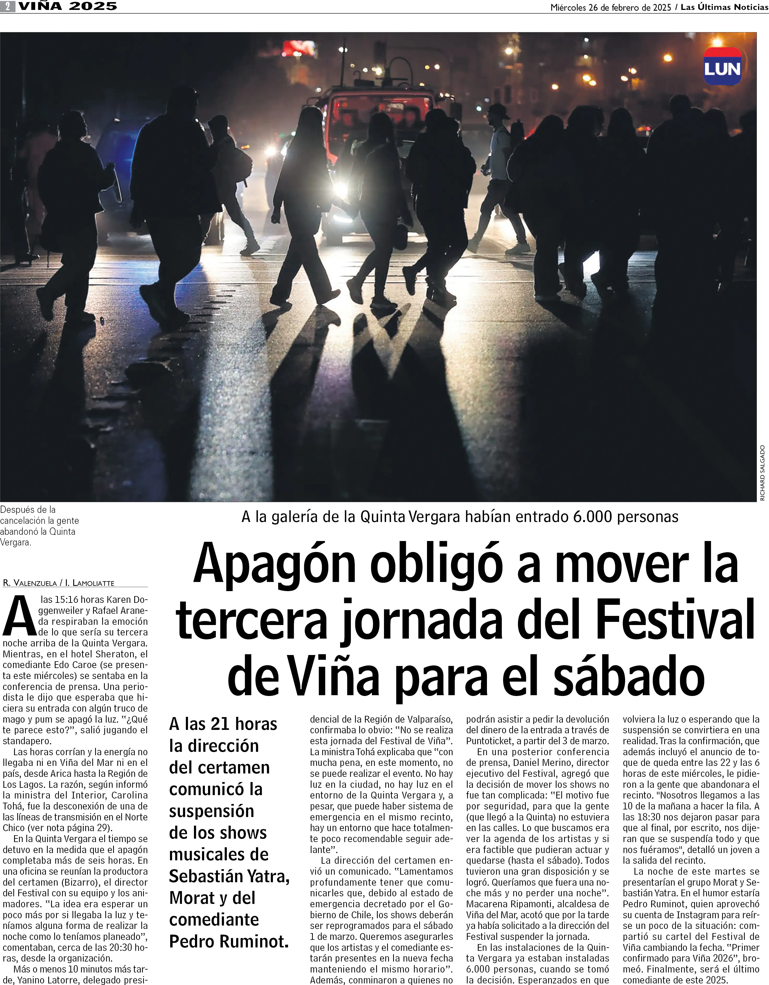 Apagón obligó a mover la tercera jornada del Festival de Viña para el sábado