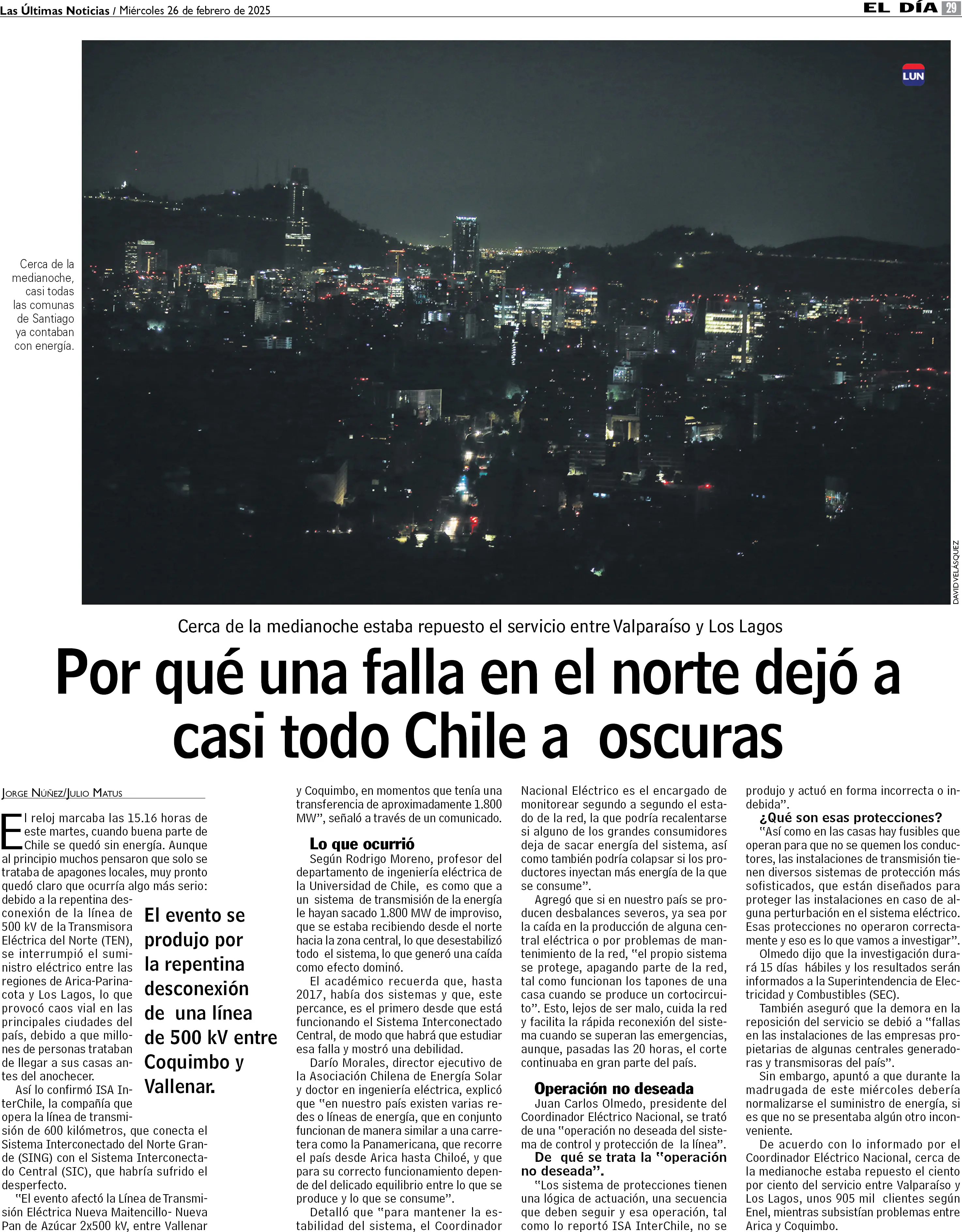 ¿Por qué una falla en el norte dejó a casi todo Chile a oscuras?