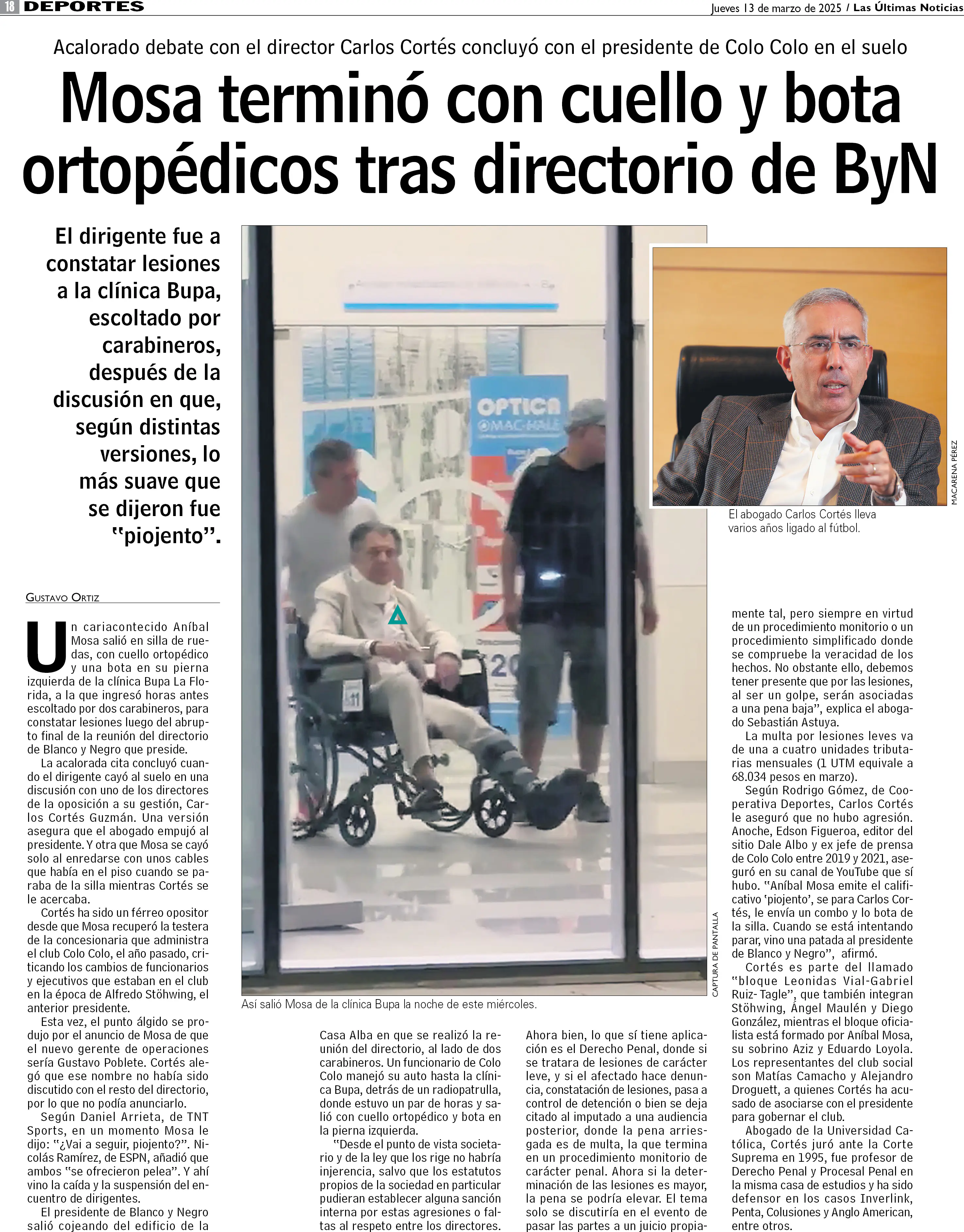 Mosa terminó con cuello y bota ortopédicos tras directorio de B&N
