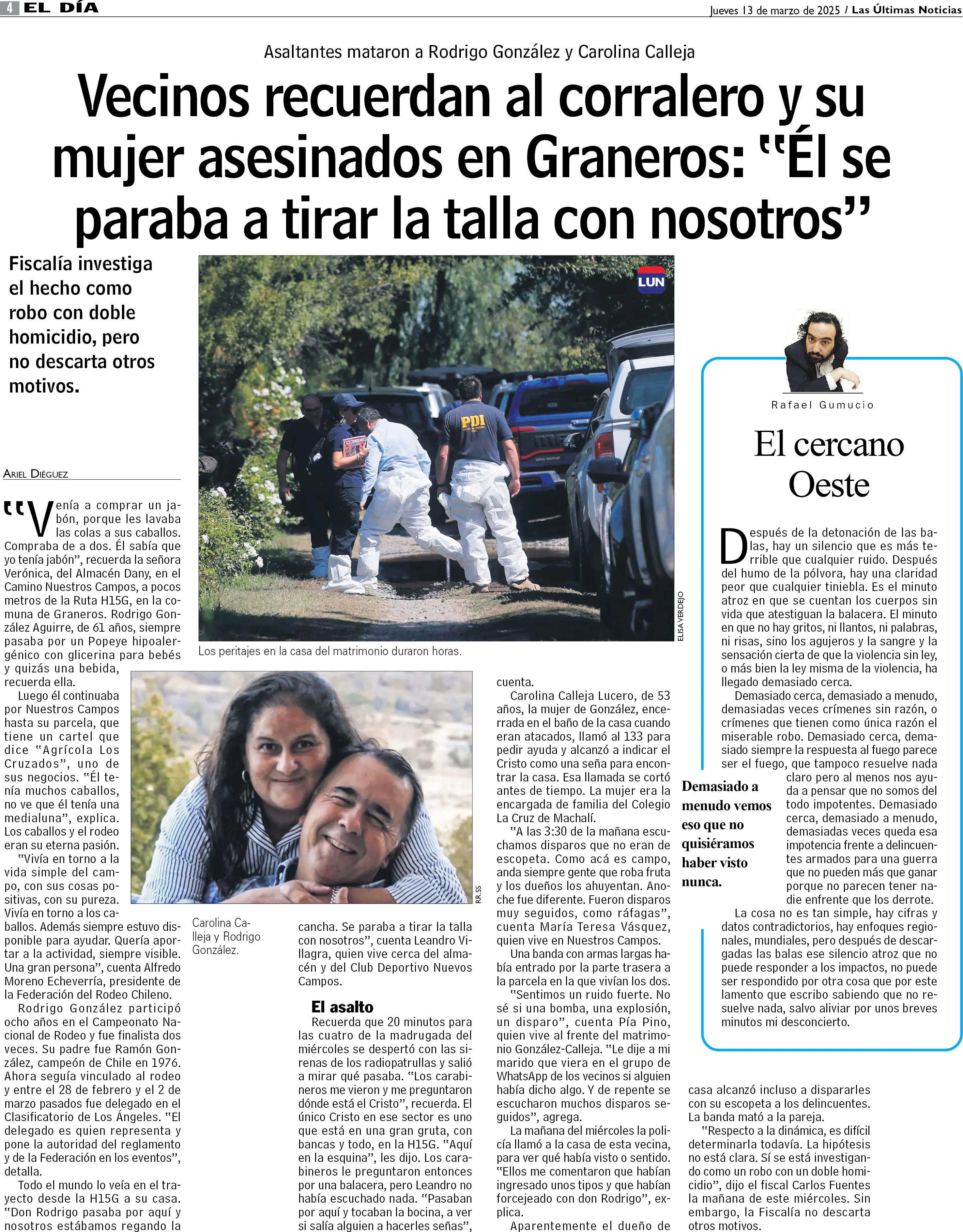 Vecinos recuerdan al corralero y su mujer asesinados en Graneros: "Él se paraba a tirar la talla con nosotros"