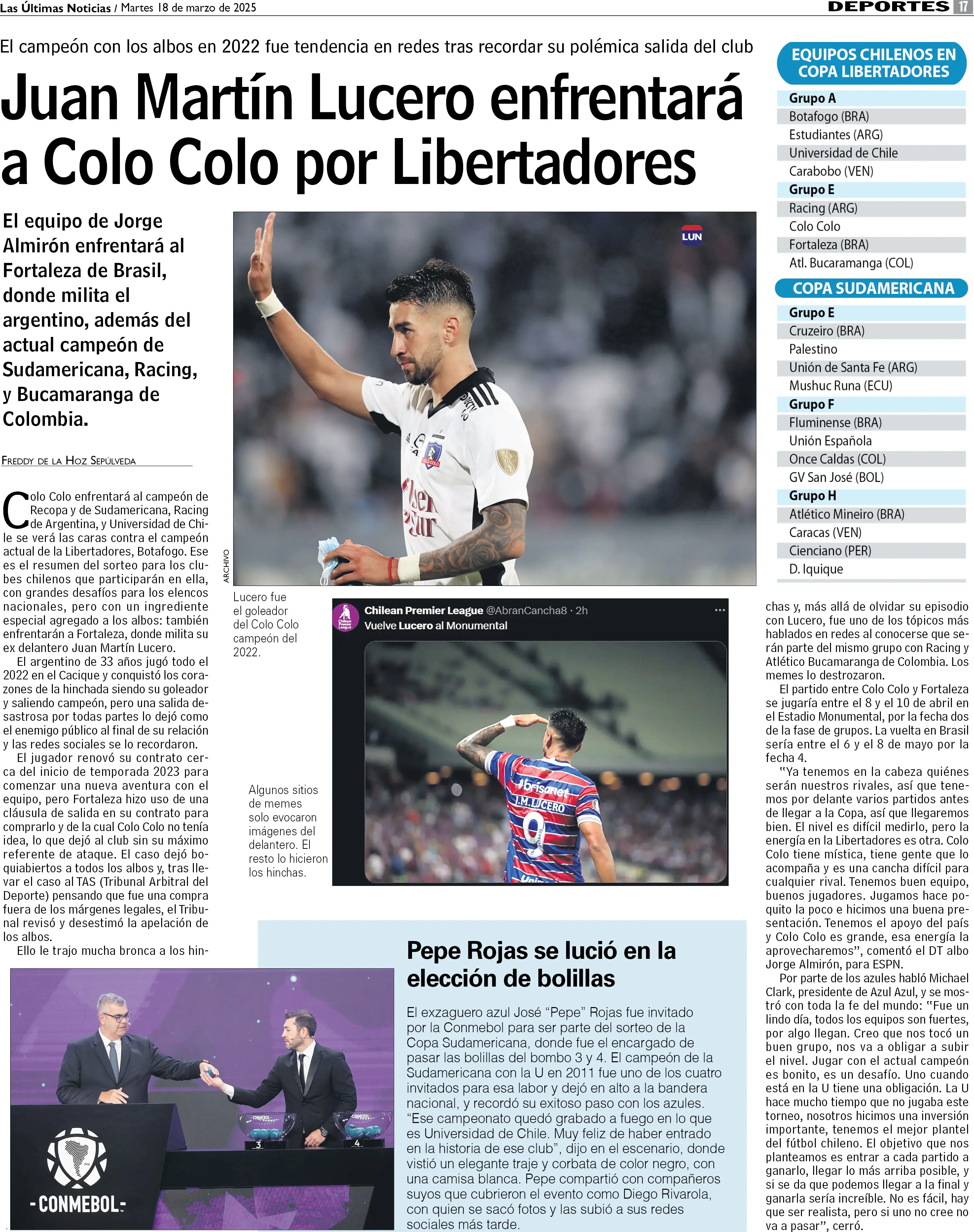 Juan Martín Lucero enfrentará a Colo Colo por Libertadores