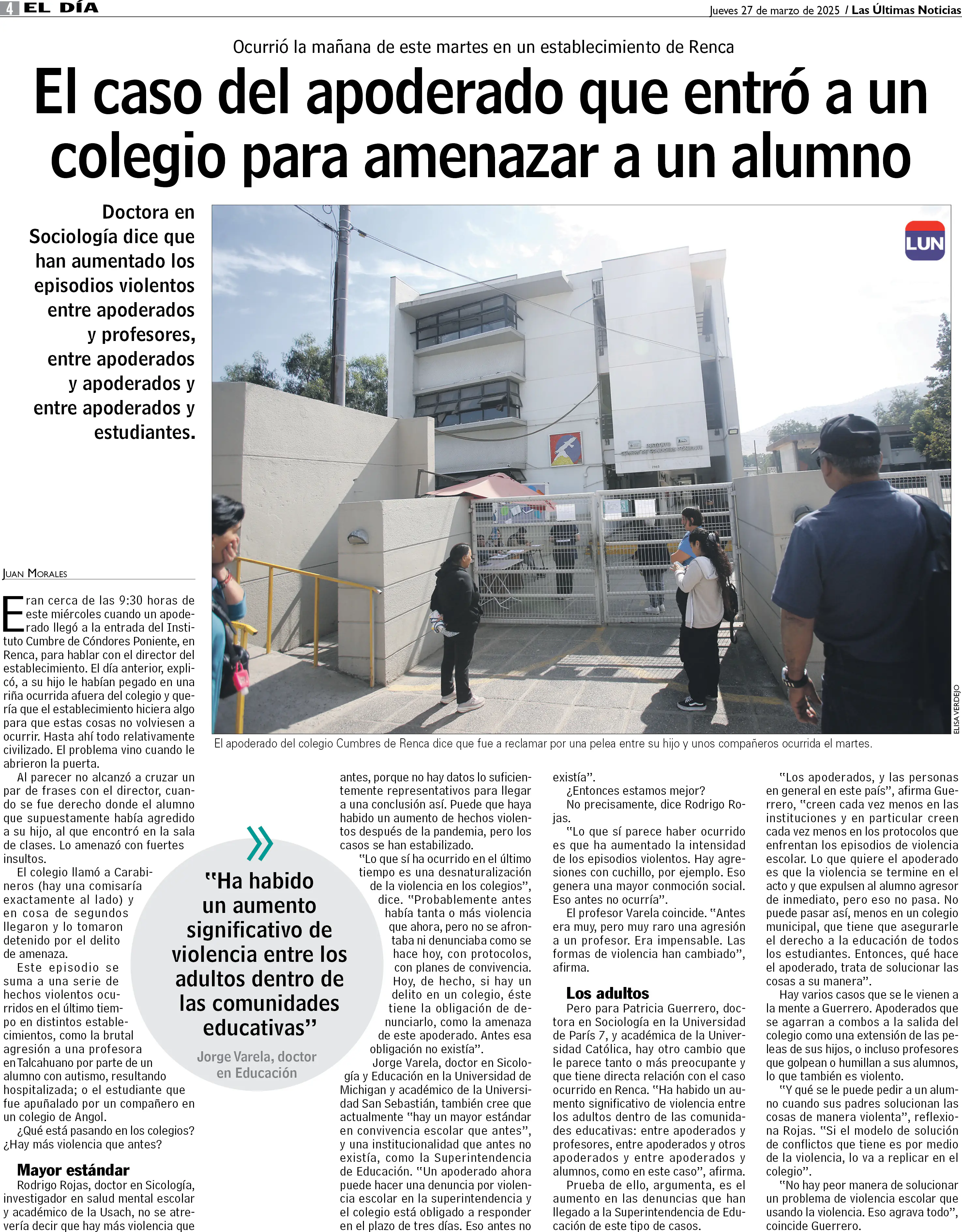 El caso del apoderado que entró a un colegio para amenazar a un alumno