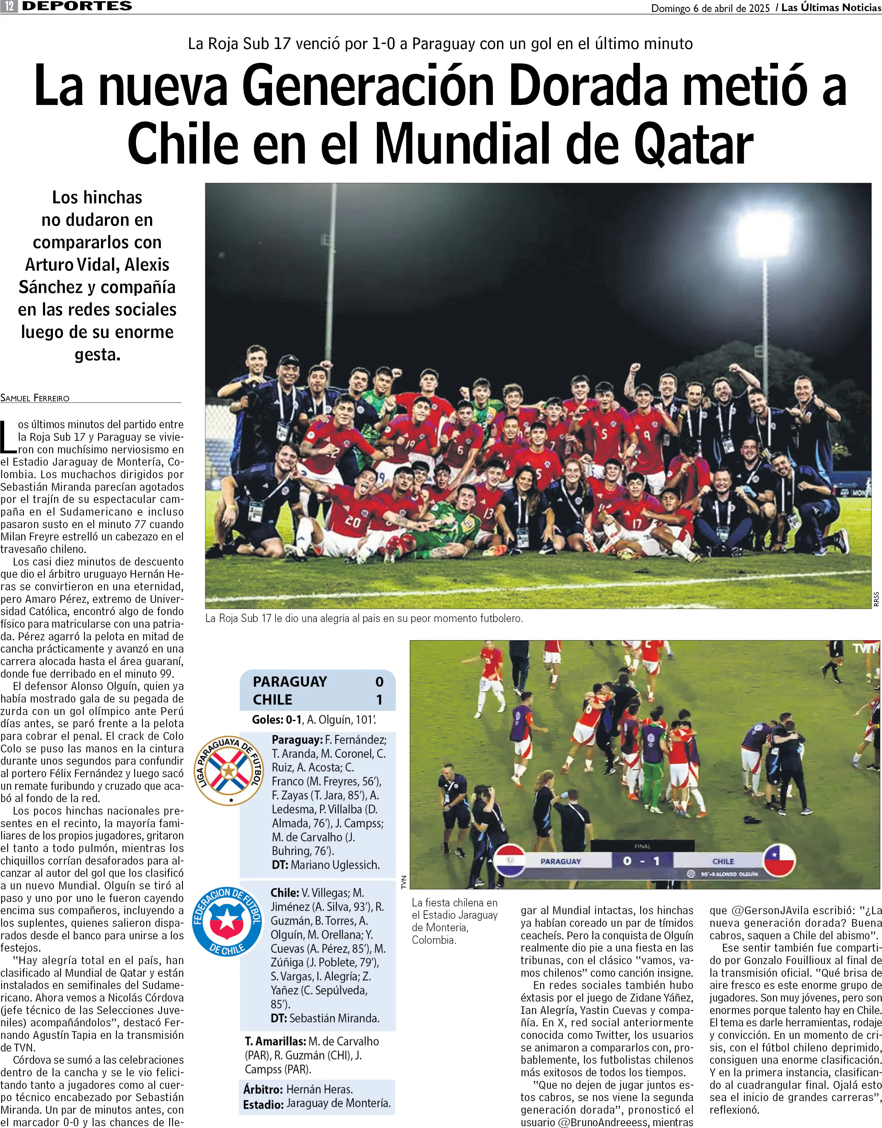 La Roja Sub 17 venció a Paraguay y clasificó al Mundial de Qatar