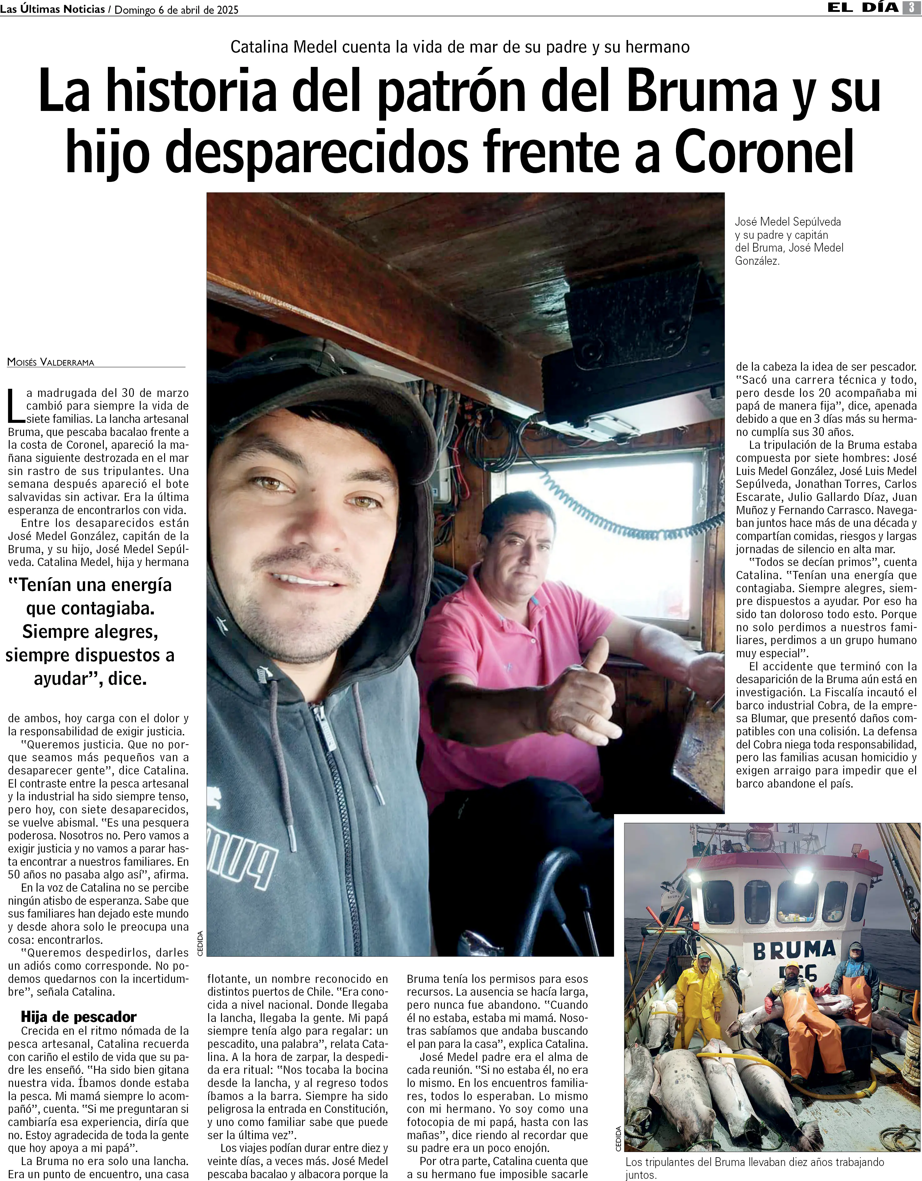 La historia del patrón del Bruma y su hijo desparecidos frente a Coronel