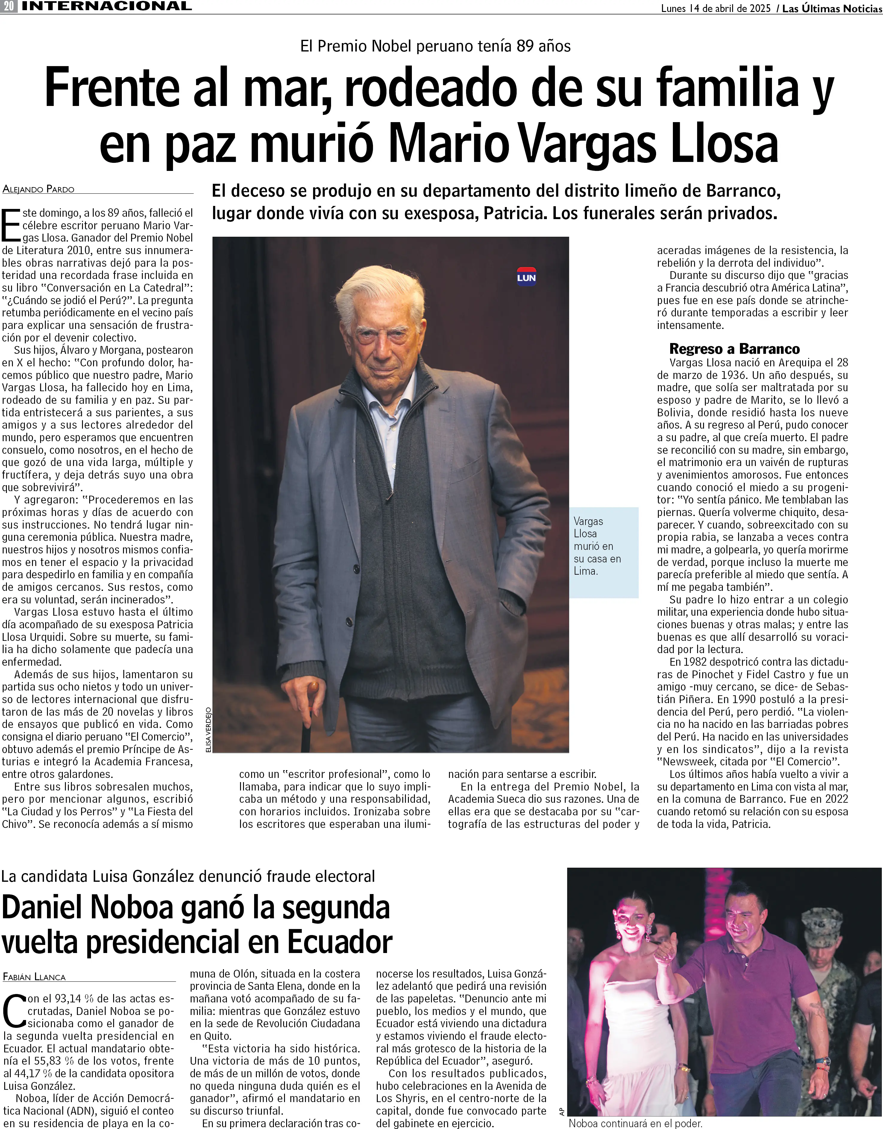 Frente al mar, rodeado de su familia y en paz murió Mario Vargas Llosa