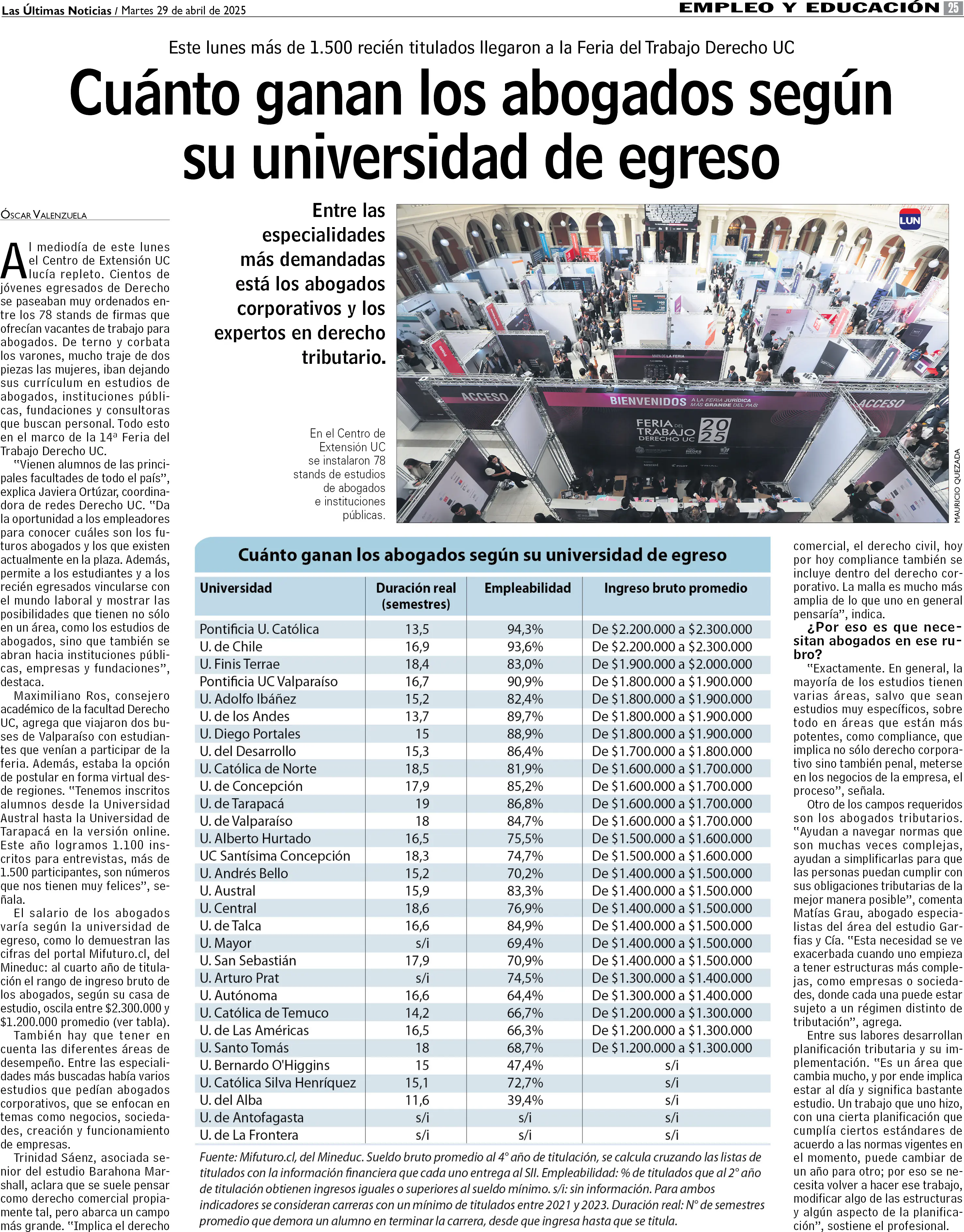 Tabla: cuánto ganan los abogados según universidad de egreso